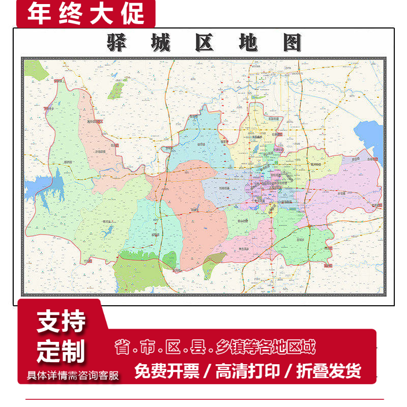 📚 驿城区地图1.15m新款高清驻马店市折叠版家用办公室书房装饰墙贴