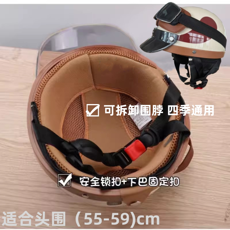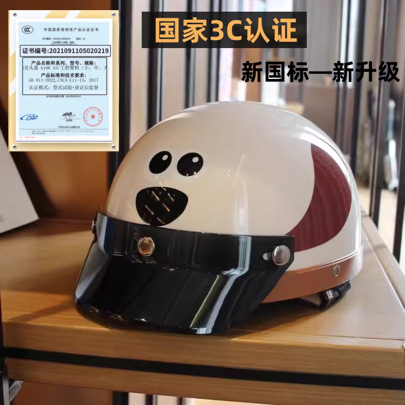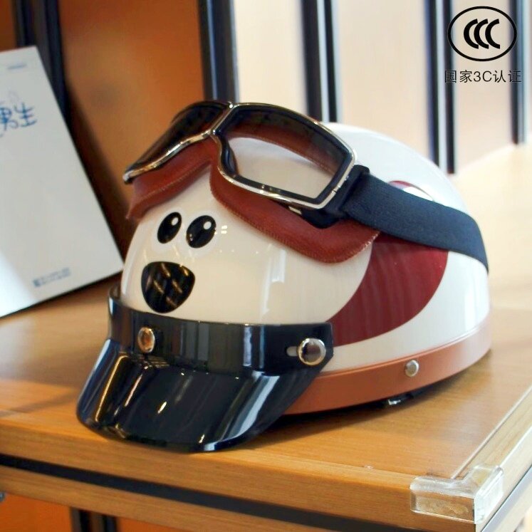 📚 头盔电动车女3C认证男可爱复古哈雷卡通狗狗安全帽摩托车半盔四季