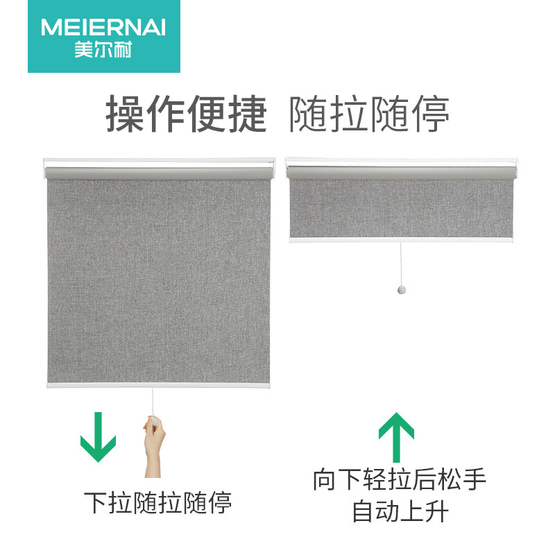 📚 美尔耐 自动上升弹簧卷帘窗帘遮光升降办公室防晒卫生间客厅定制