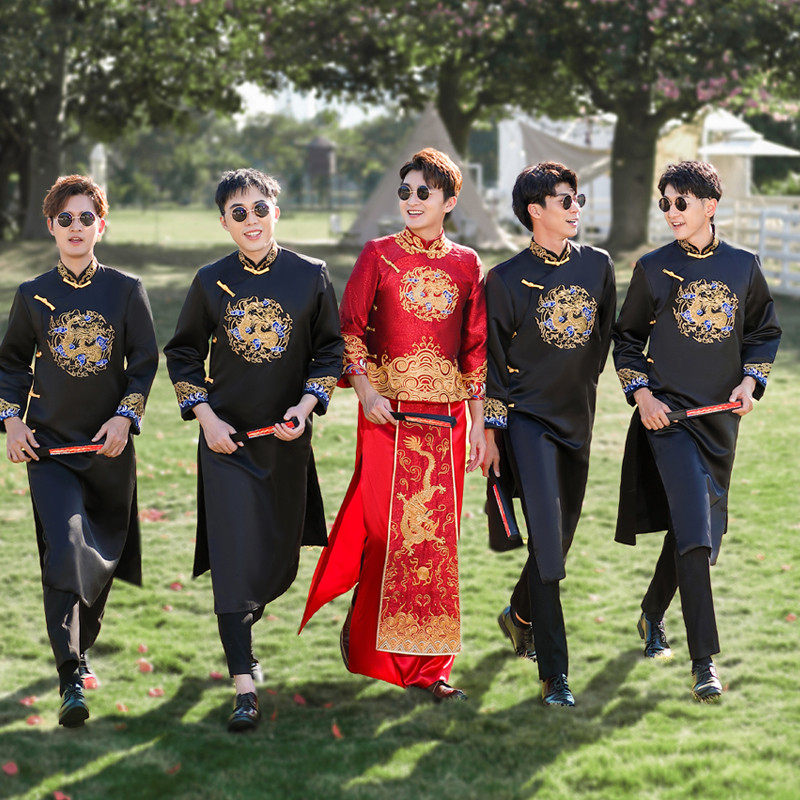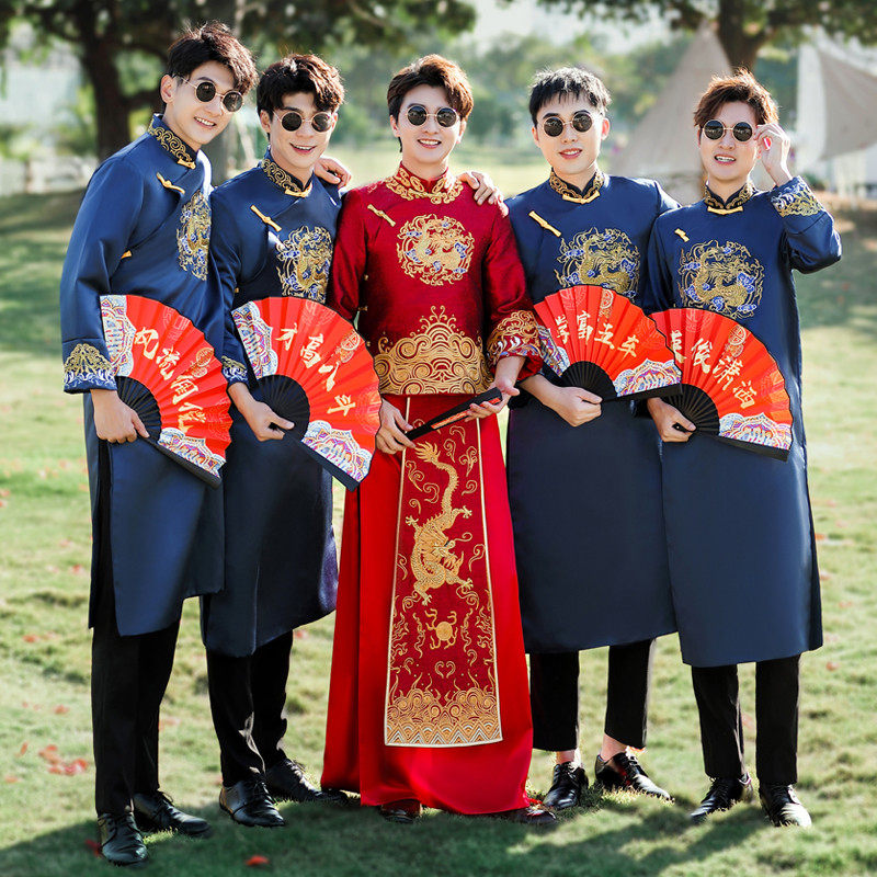 📚 伴郎服中式兄弟装国风男士大码结婚礼兄弟团衣服搞笑国风唐装大褂