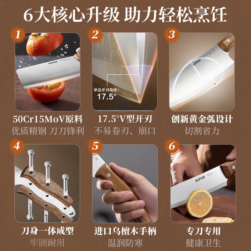 📚 包邮苏泊尔菜刀家用刀具厨房切菜切肉刀不锈钢厨师专业套装木柄刀