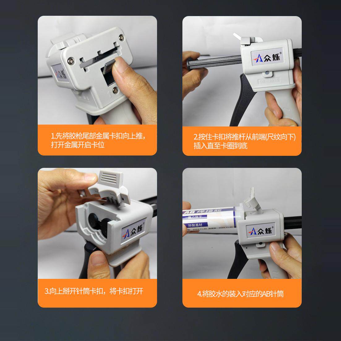 📚 众烁 AB胶枪3M/乐泰环氧AB胶胶枪50ML通用型1:1/1:2胶水推进工具单组份30/50ML胶枪
