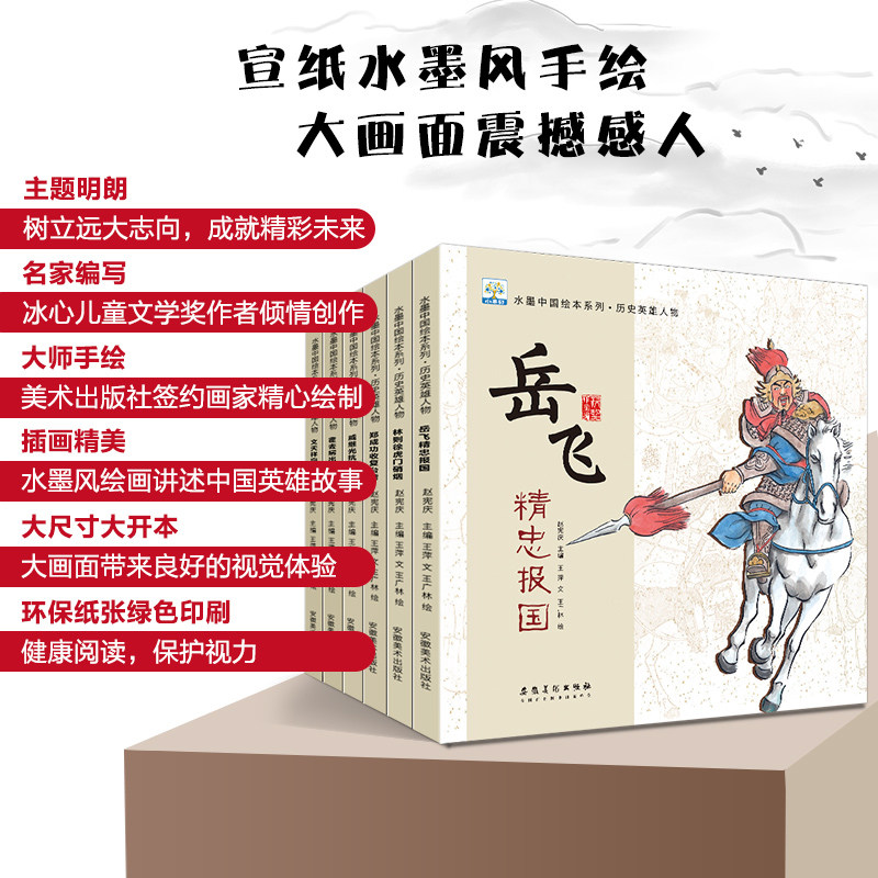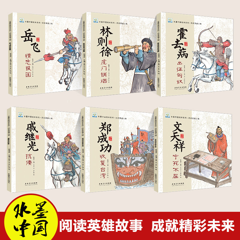 📚 含音频】水墨中国绘本系列历史英雄人物全6册 岳飞郑成功文天祥戚继光林则徐中国古代近代历史英雄人物故事绘本3—6岁儿童读物正版