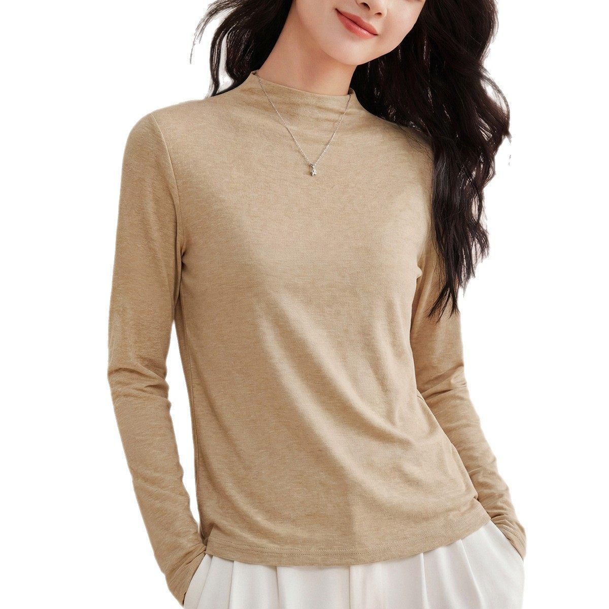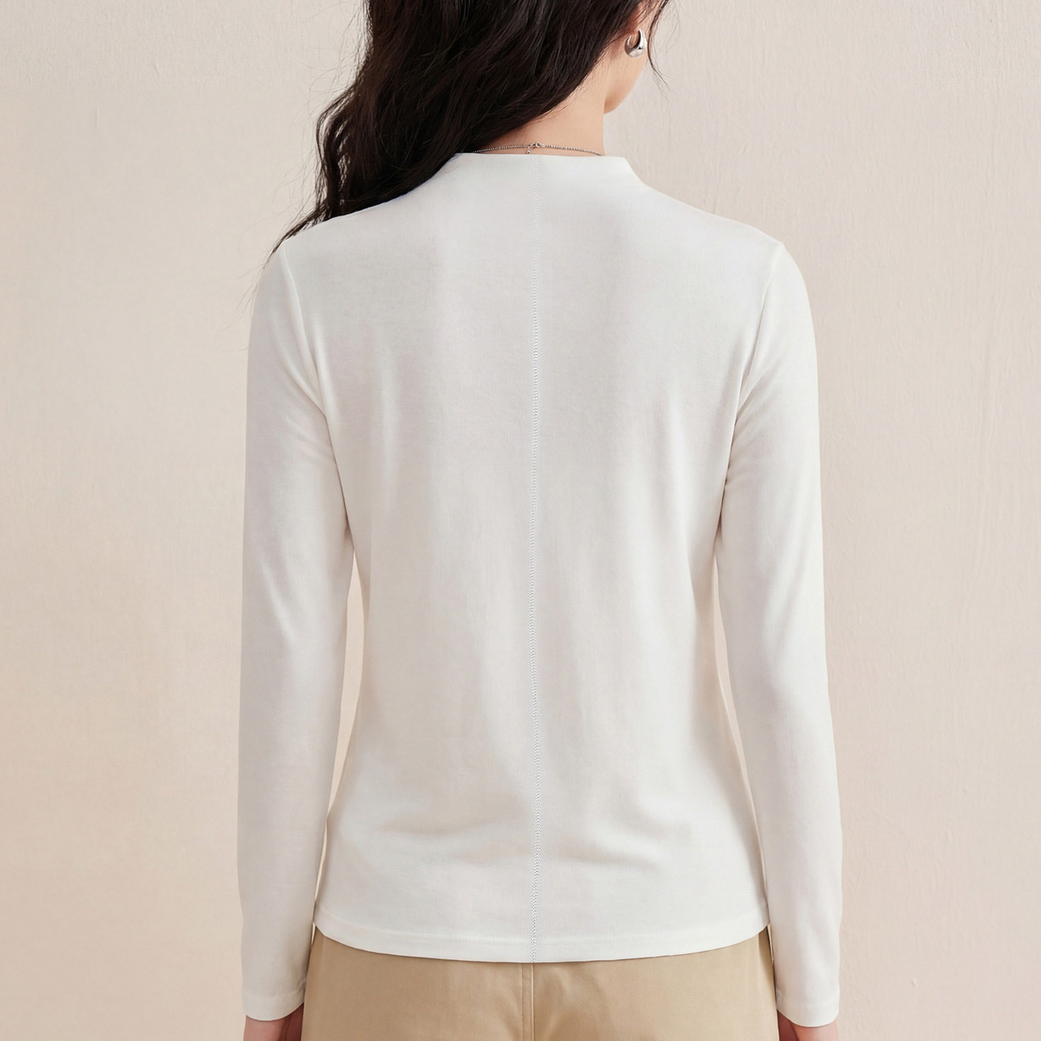 📚 后中线设计显瘦长袖正肩T恤莱赛尔天丝羊毛百搭打底衫上衣女春秋