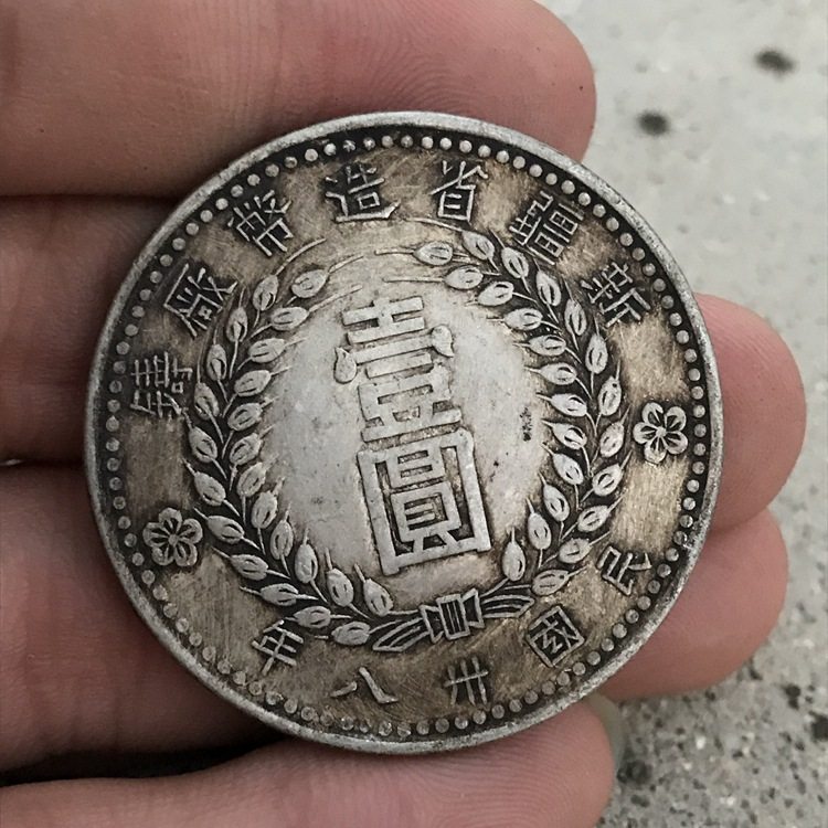 📚 纯银银元 黑黄包浆袁大头三年银币 民国38年新疆省造1949年一元
