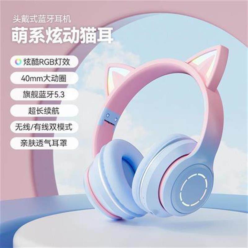 📚 LED Cat Ear Noise Cancelling Headphones Bluetooth5.0 Headset