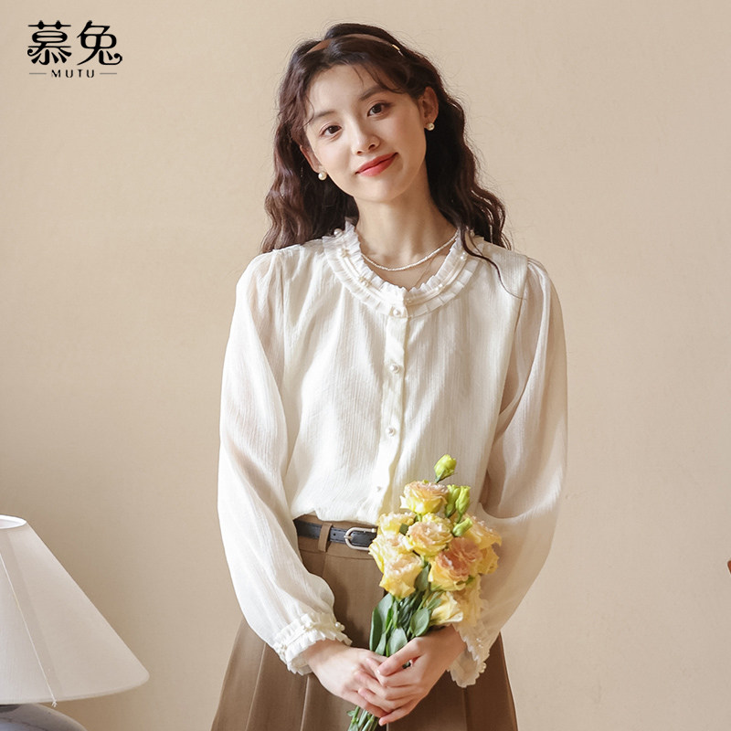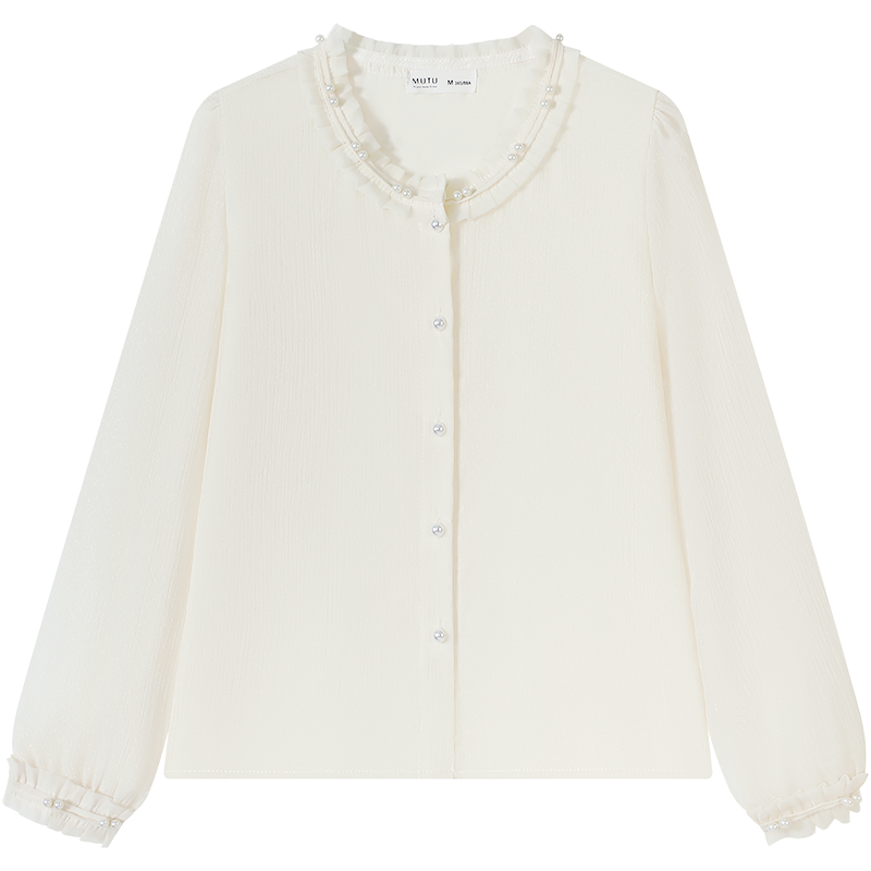 📚 慕兔法式重工钉珠圆领衬衫女2026春季新款别致设计感小众长袖上衣