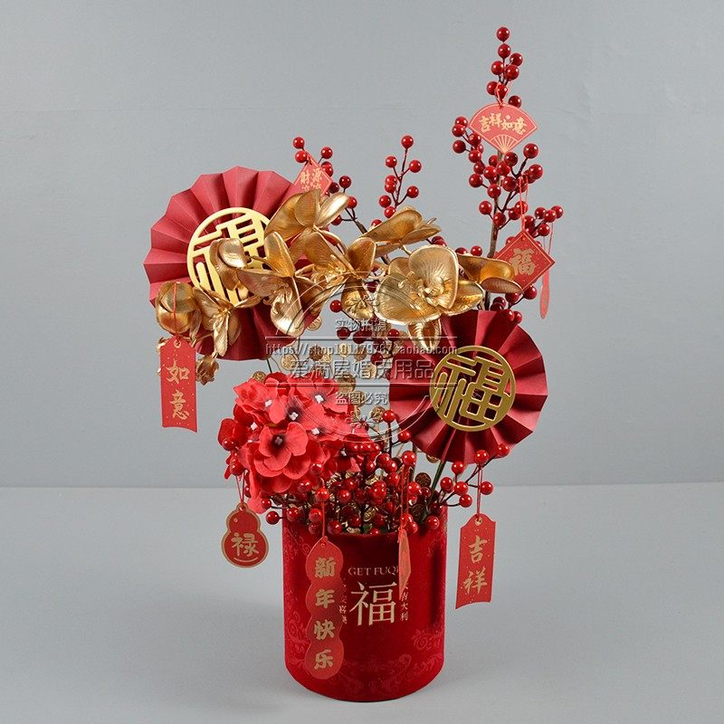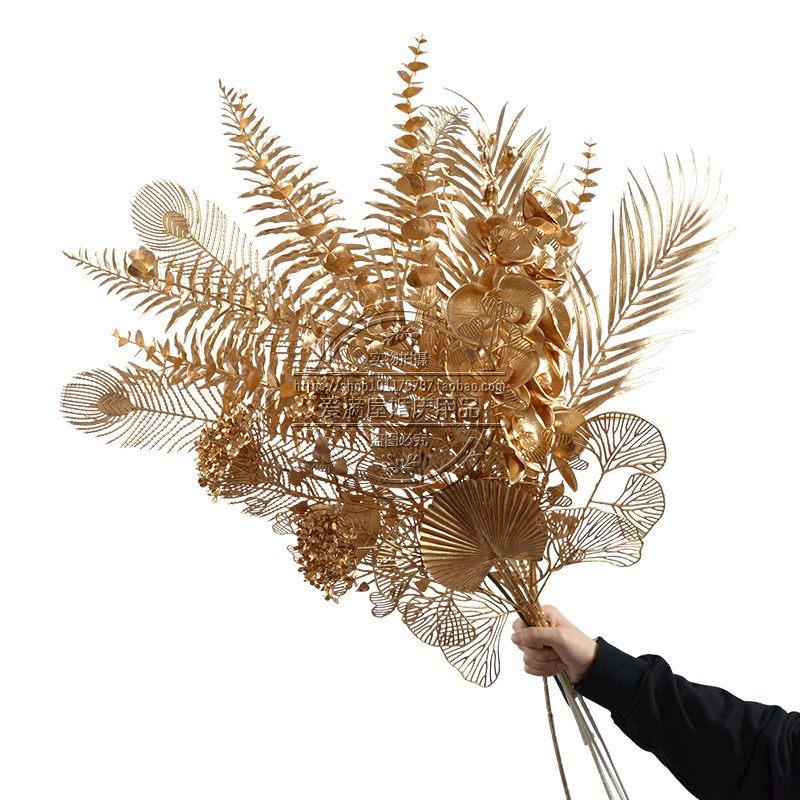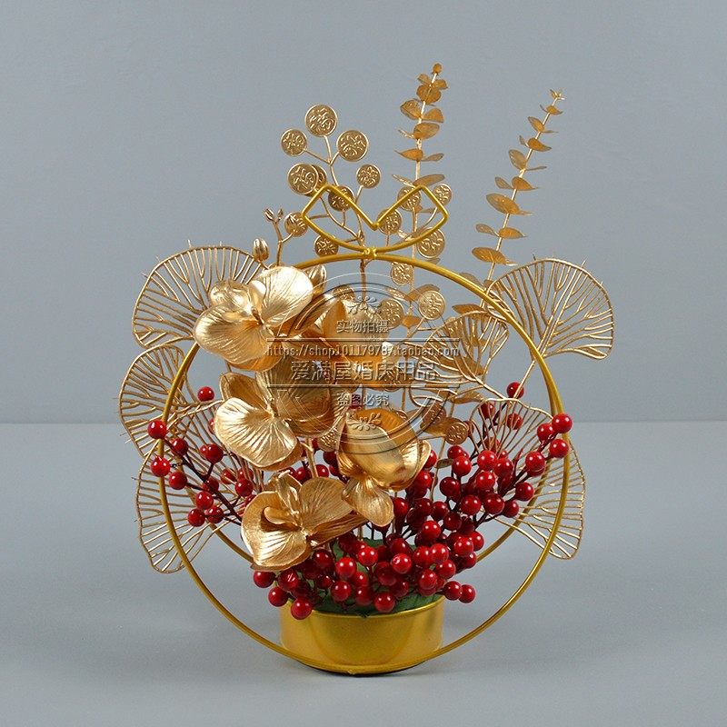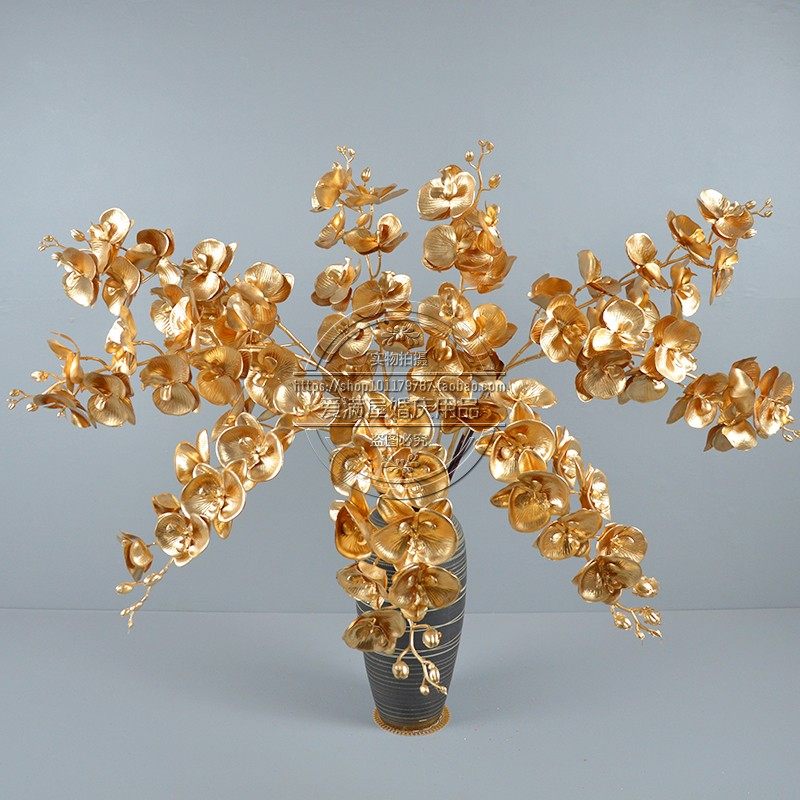 📚 轻奢7头9头镂空蝴蝶兰金色礼堂布置装饰福桶年宵花插花材花瓶摆件
