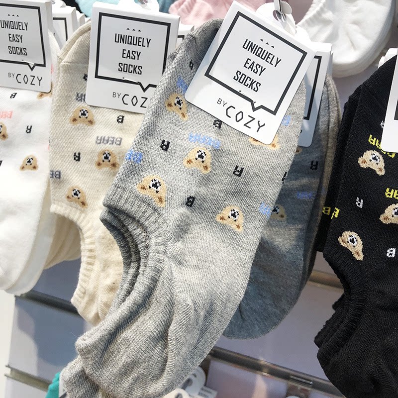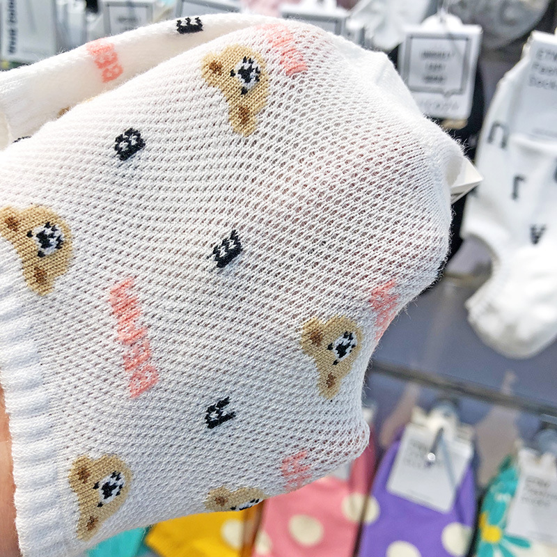 📚 韩国卡通袜子女东大门COZY网面小熊少女薄棉短袜防脱隐形袜4021