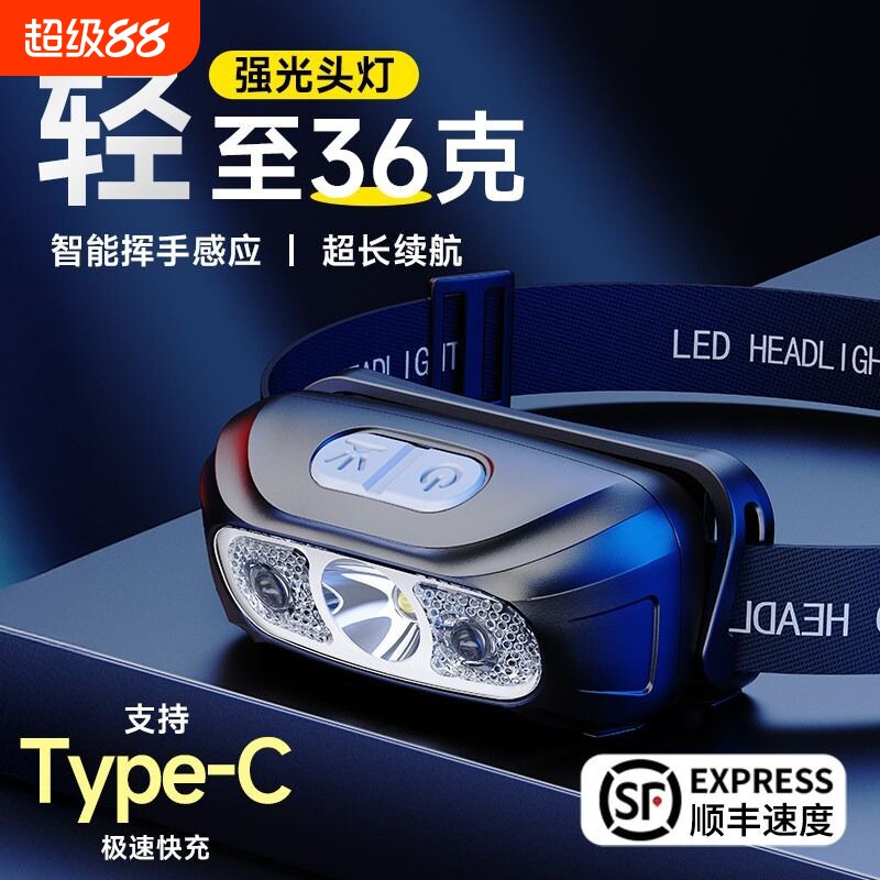 📚 头灯强光超远射充电超亮感应头戴式照明超长续航户外钓鱼登山小型