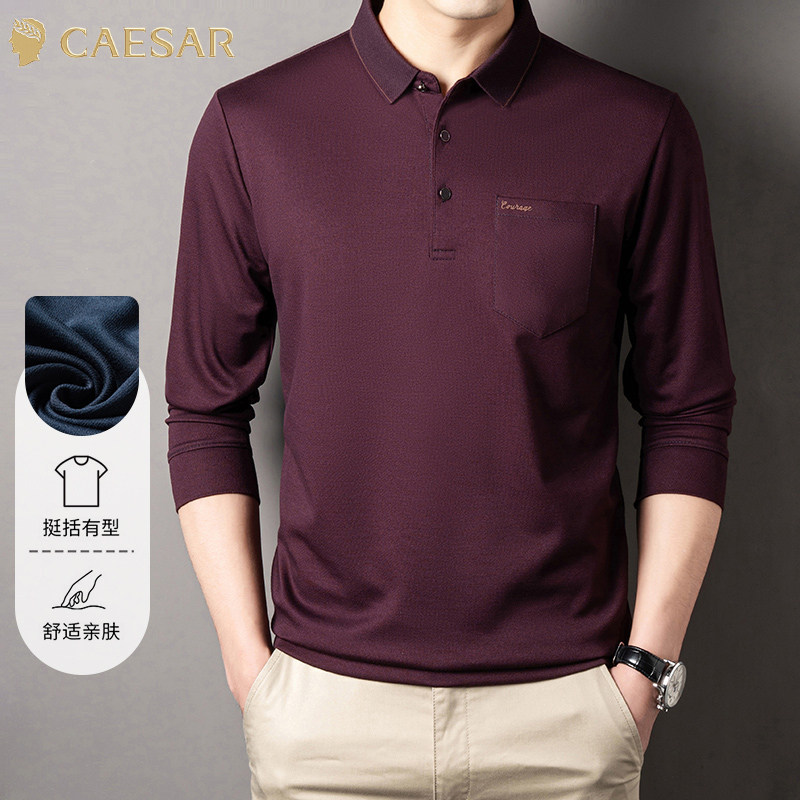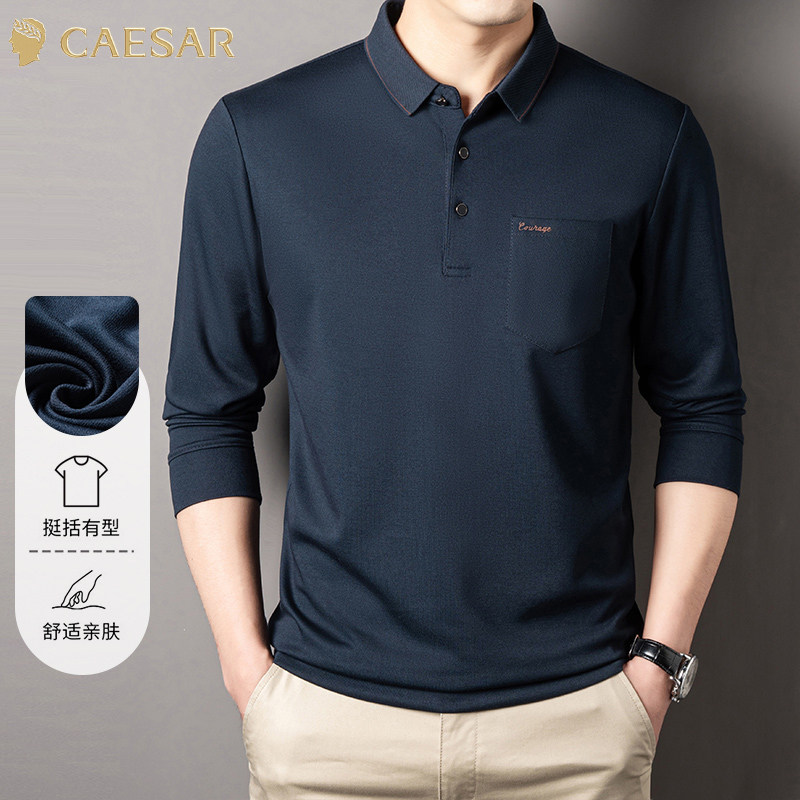 📚 凯撒大帝2025春秋新款POLO衫男士长袖上衣纽扣翻领日常商务休闲J