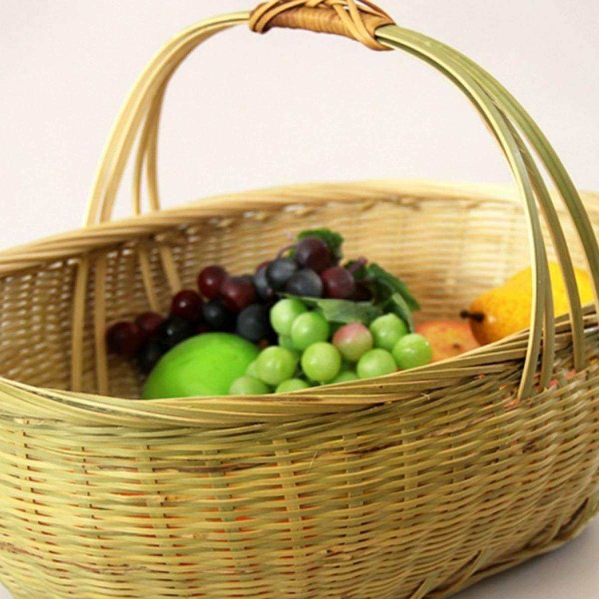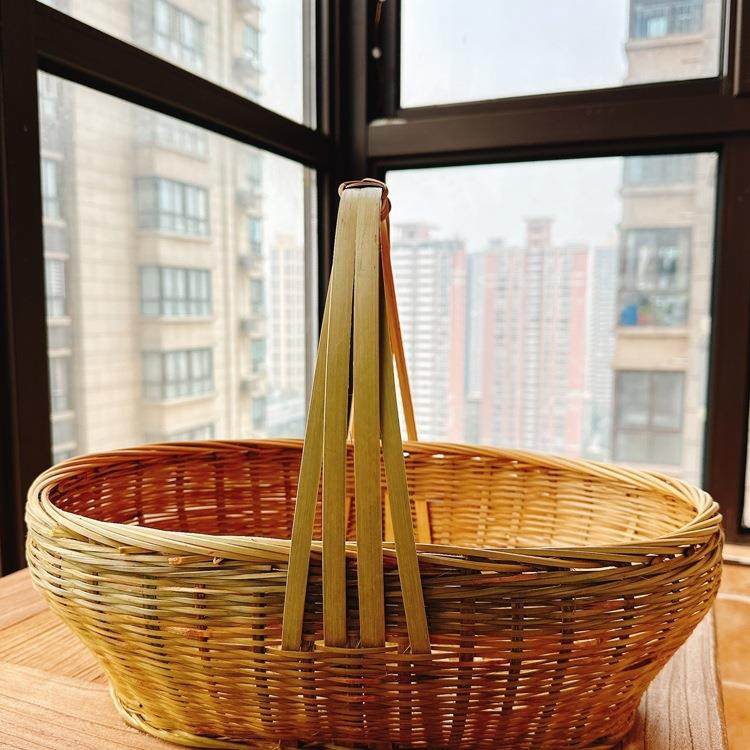 📚 竹编手提篮家用买菜篮子精编大号水果蔬菜采摘篮农用厨房收纳筐