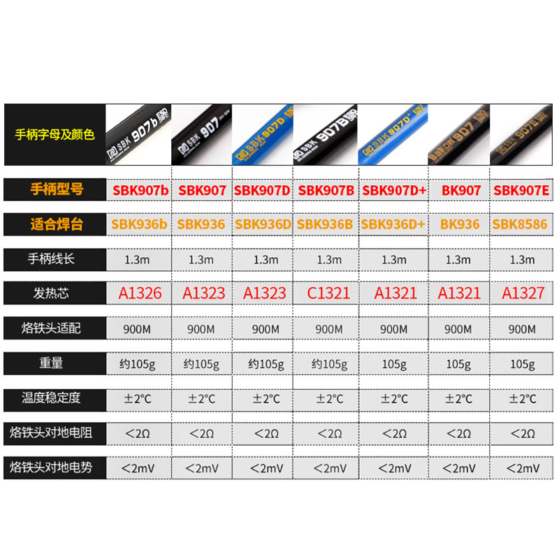 📚 白光恒温电烙铁焊台手柄SBK936B/907E/D/917A/LF100/201/202/305