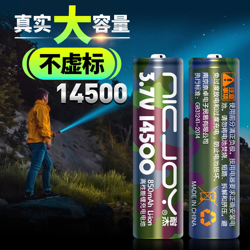 📚 耐杰14500锂电池 5号可充电大容量3.7V动力10440平头鼠标带线正品