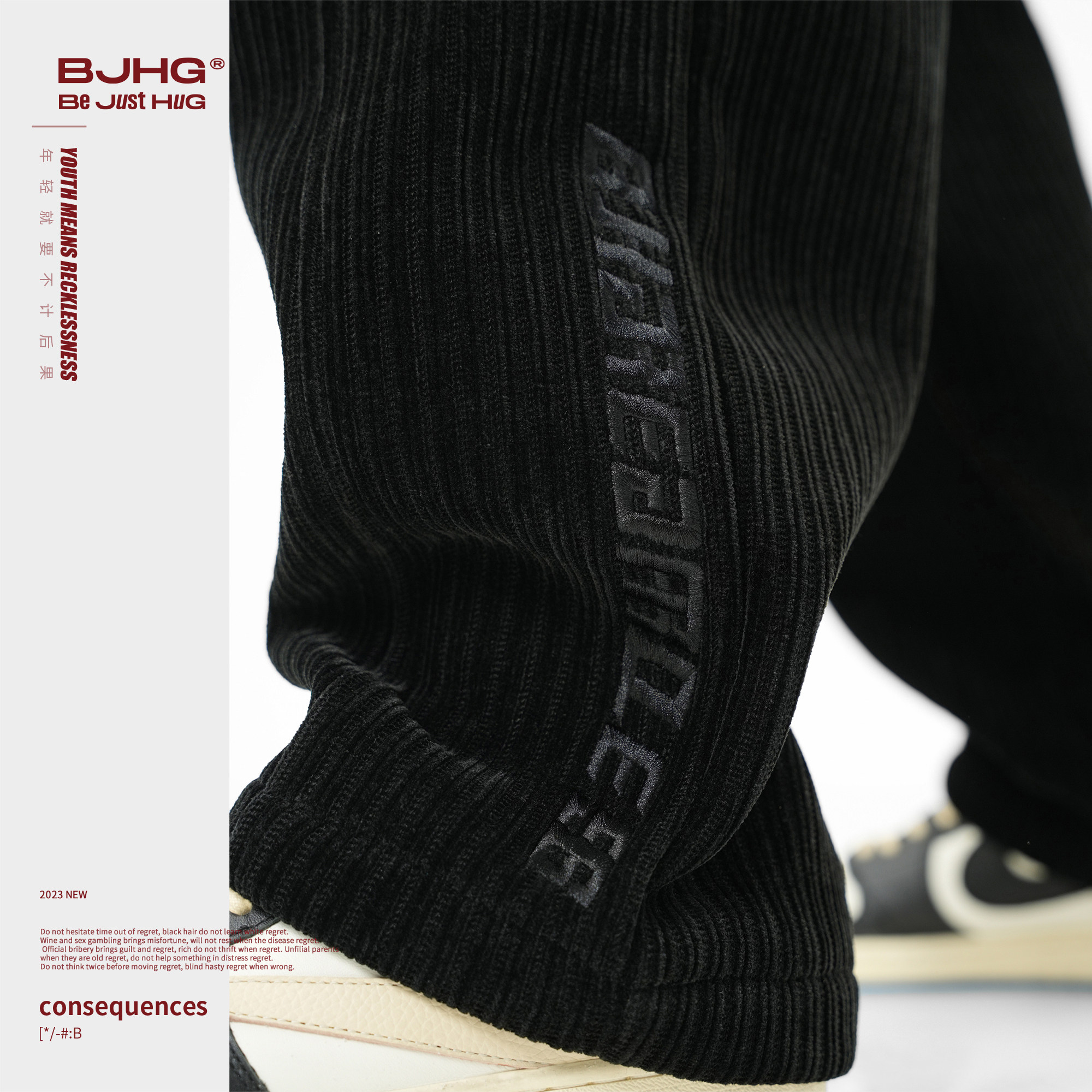 📚 BJHG不计后果灯芯绒黑色加绒裤子男款冬装休闲裤加厚运动休闲卫裤