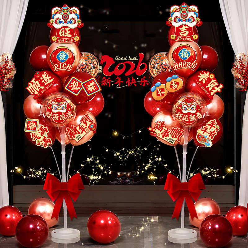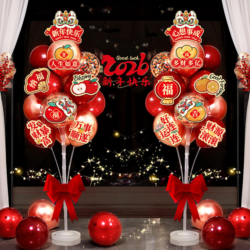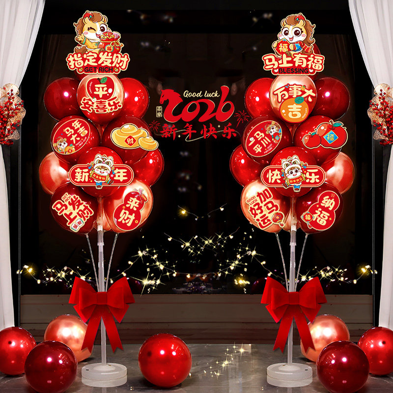 📚 2026新款马年新年气球立柱年会客厅银行门店布置套装过年装饰地飘
