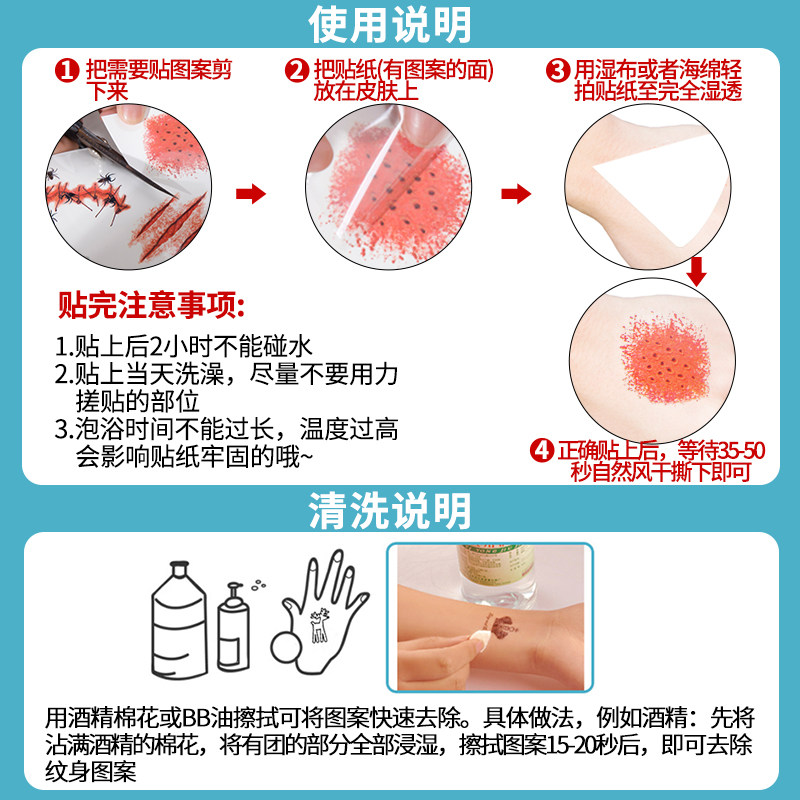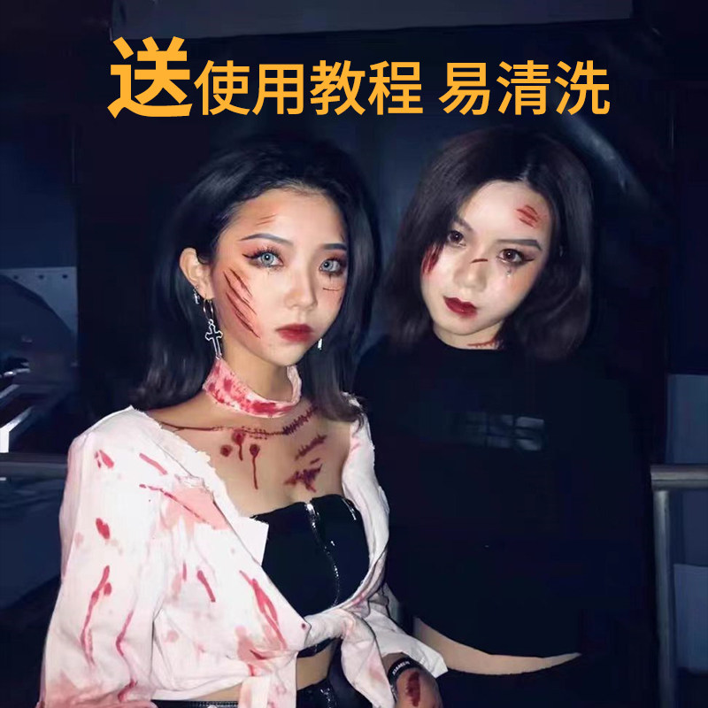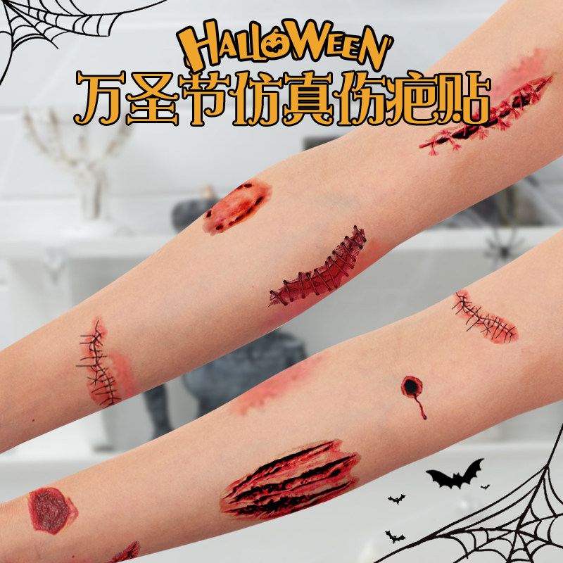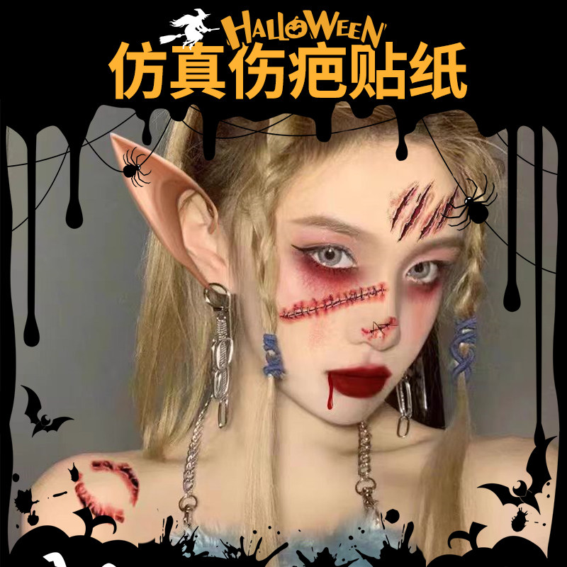📚 万圣节装饰妆容假伤疤贴饰品脸贴纹身贴纸吸血鬼装扮恐怖化妆道具