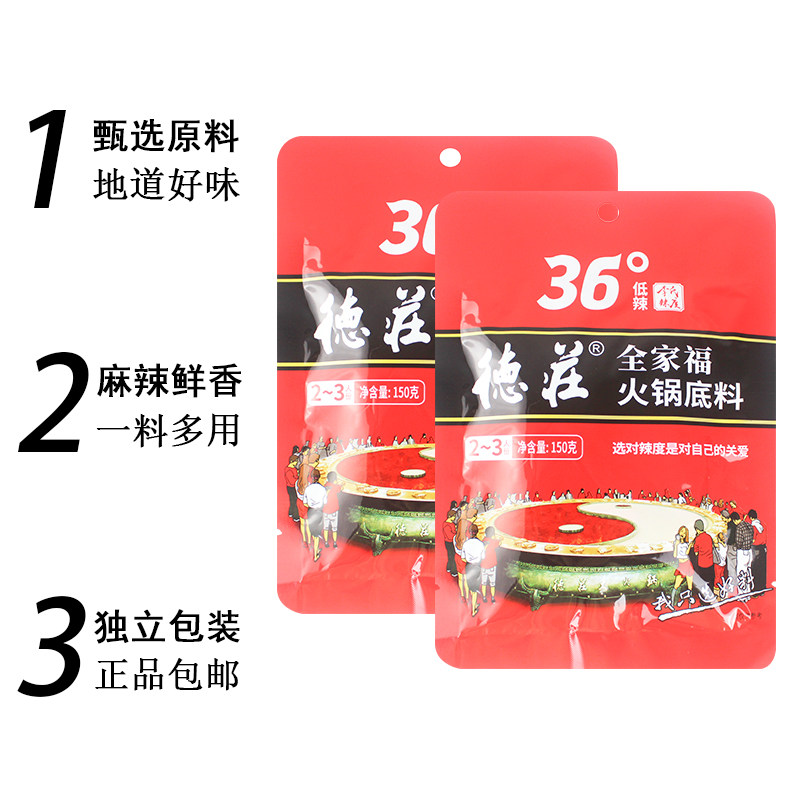📚 德庄全家福火锅底料150g低辣36度牛油冒菜麻辣鱼重庆小面川菜调料