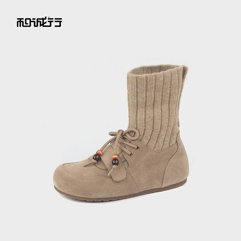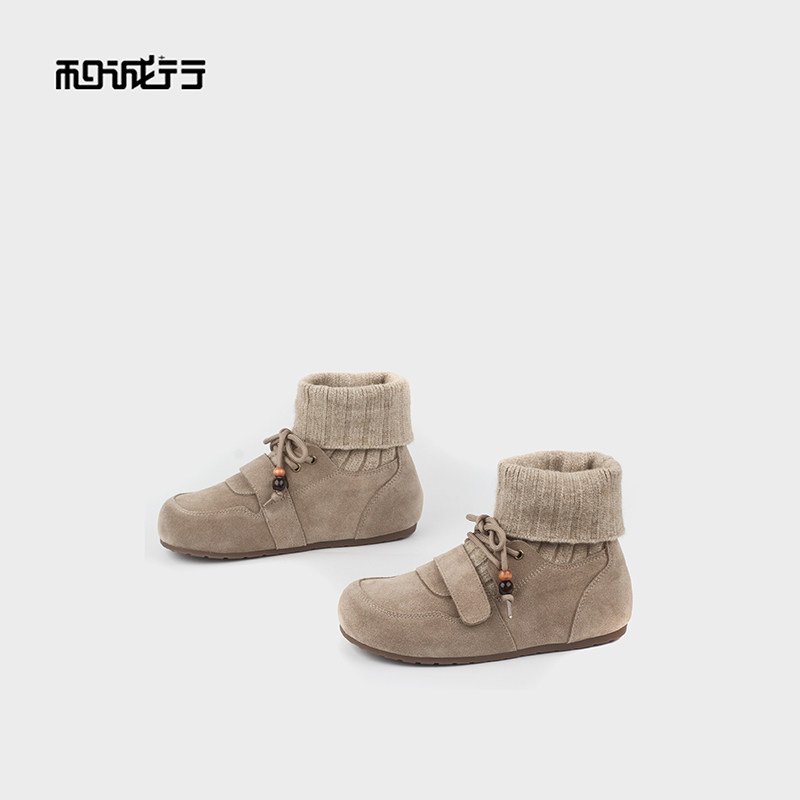 📚 和诚行2025秋冬新款真皮短靴时尚复古风系带百搭女式短靴1930115