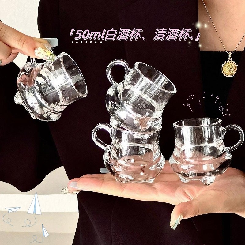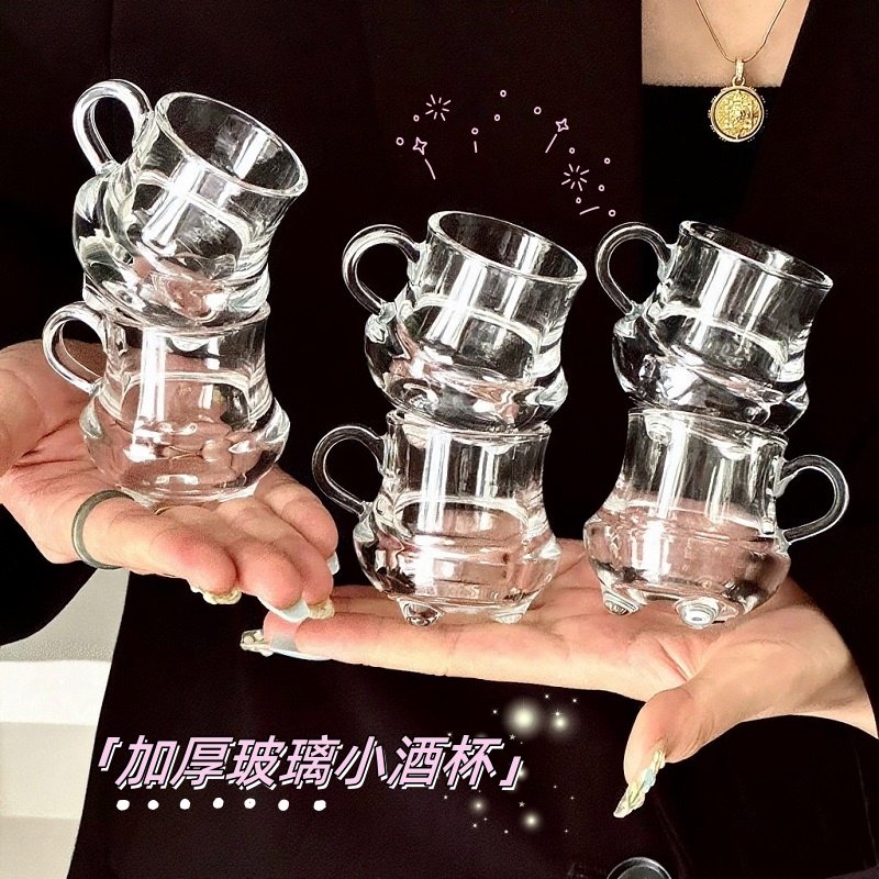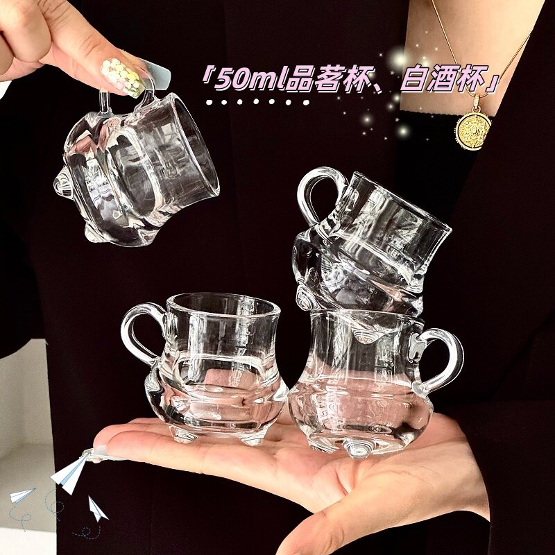 📚 ins中式家用50ml白酒杯一两清酒杯玻璃品茗杯三足杯茶杯水杯子厚