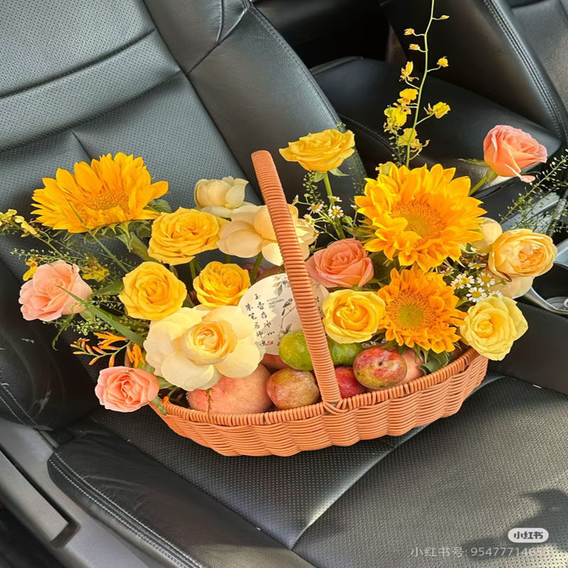 📚 仿藤编节日礼品篮家用水果篮手工编织收纳月子鸡蛋手提花篮野餐篮