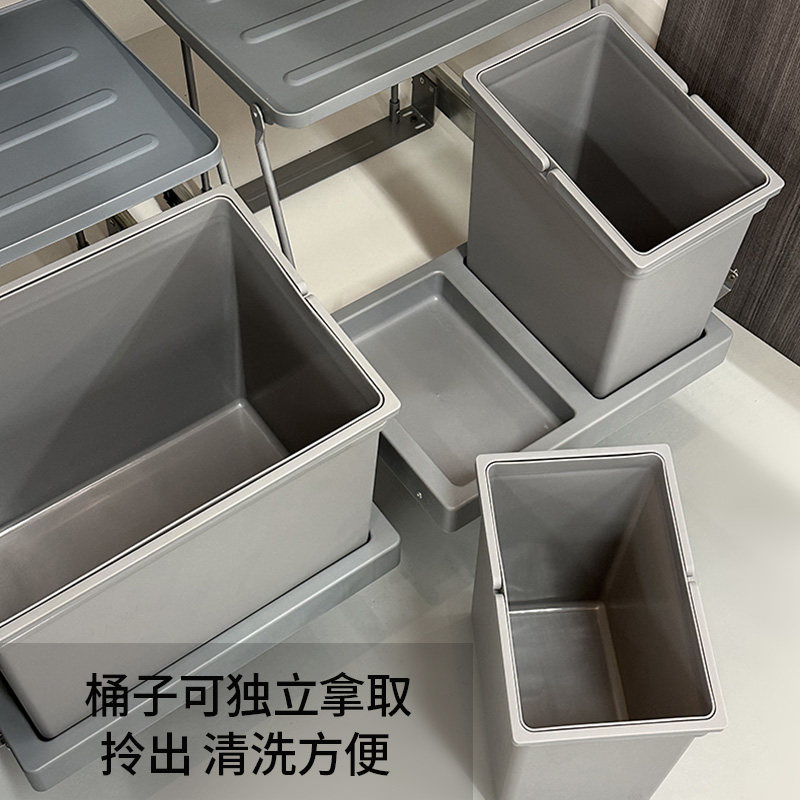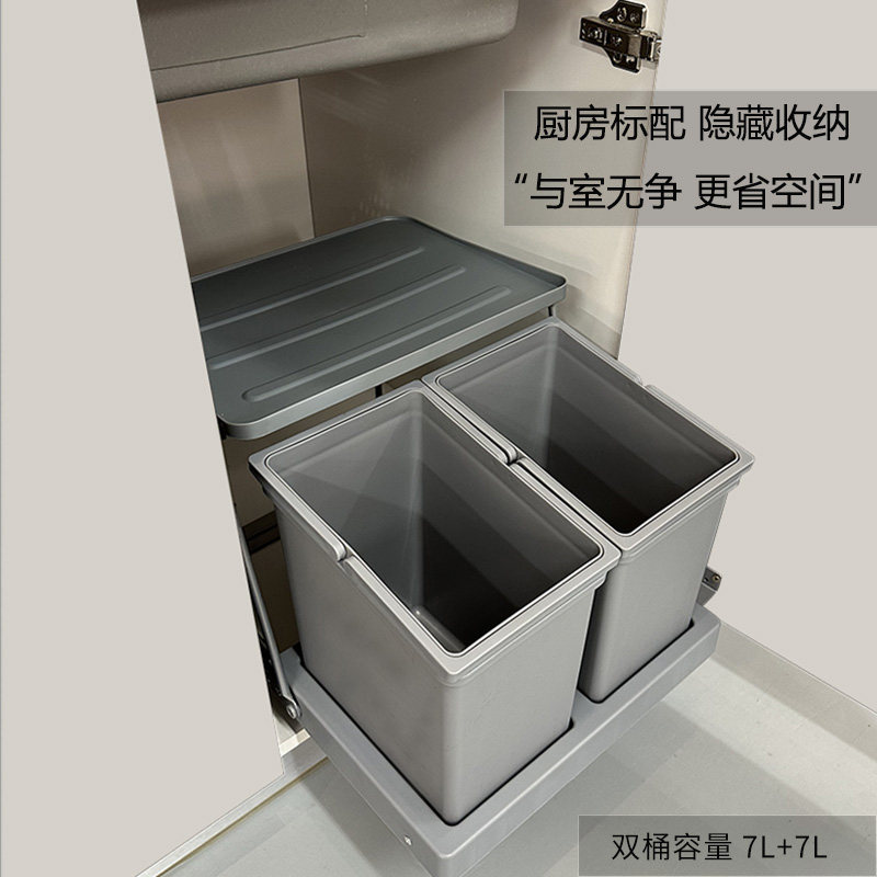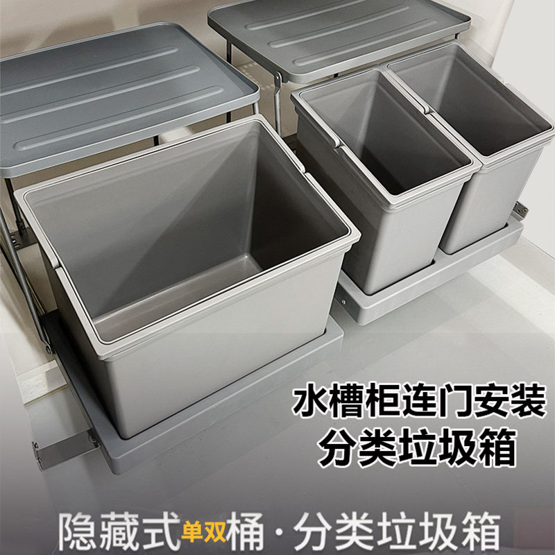 📚 厨房橱柜垃圾桶嵌入式水槽柜隐藏式抽拉分类带盖清洁桶家用大容量