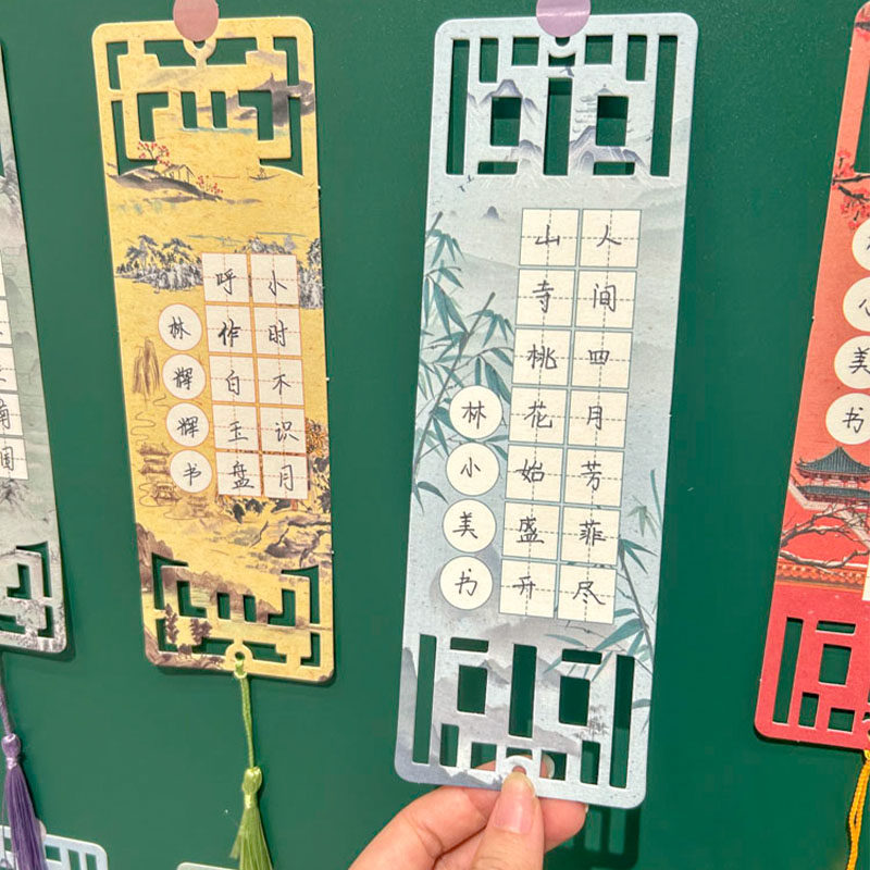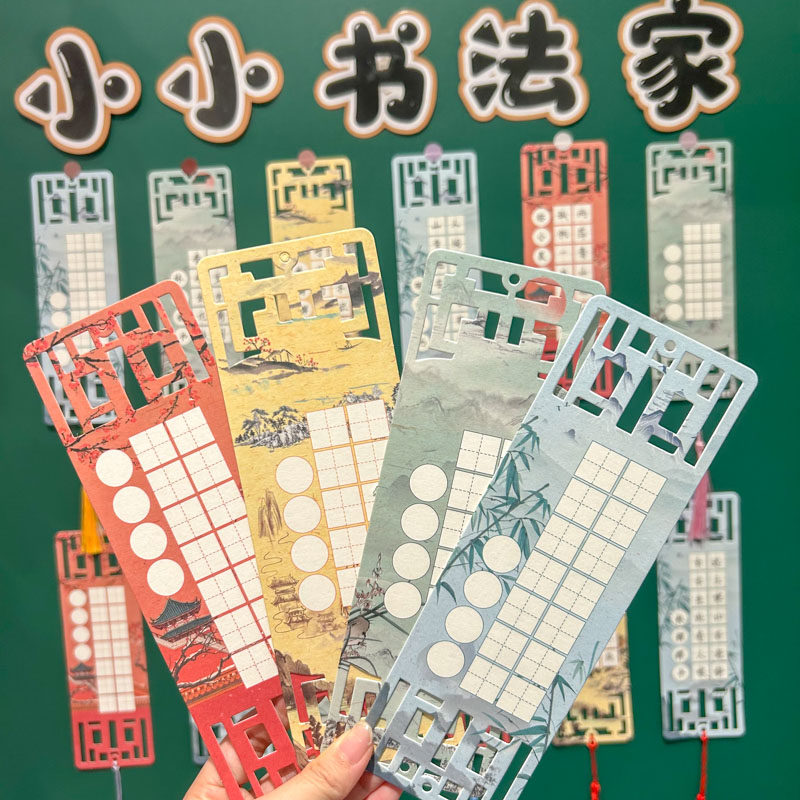 📚 小小书法家硬笔书法作品纸新年比赛专用古典空白田字格书签创意一年级小学生古诗词手写练字展示墙贴装饰卡片