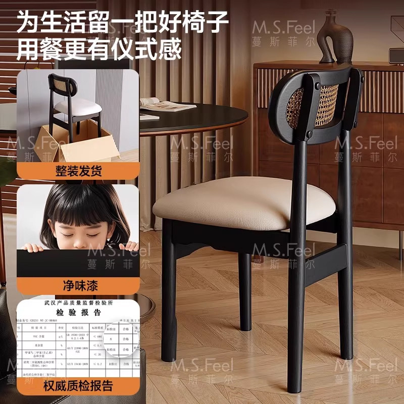📚 中古风餐椅家用2026新款餐厅靠背凳子藤编实木椅子法式复古餐桌椅