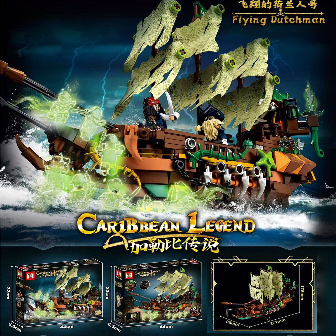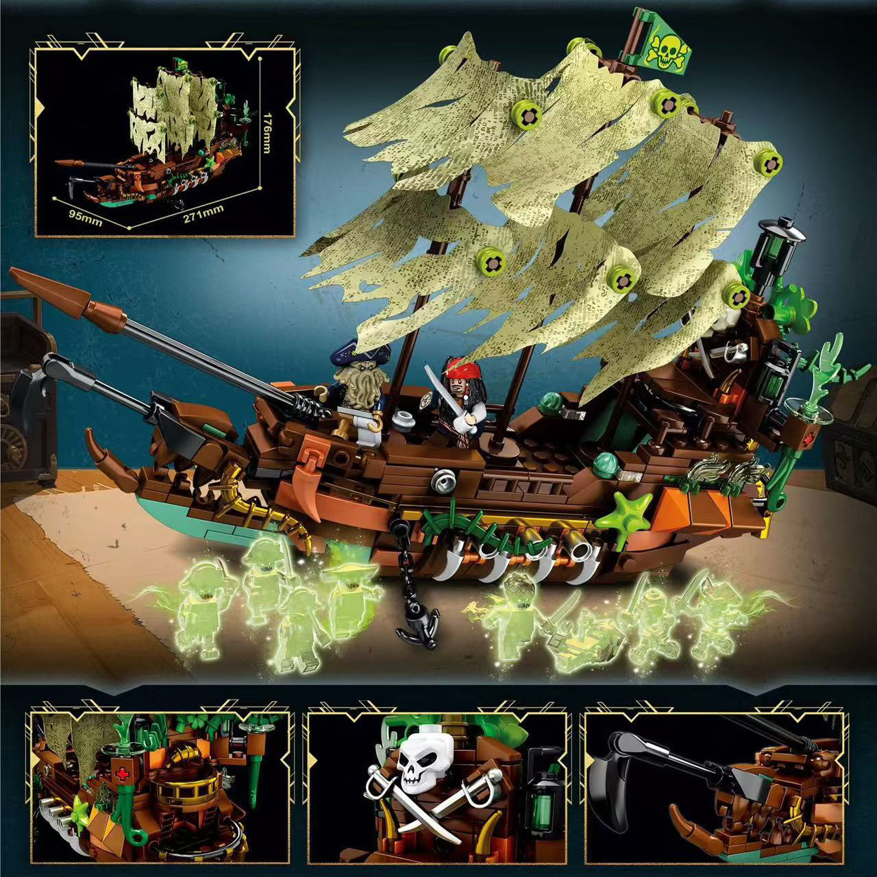 📚 飞翔的荷兰人号大型加勒比海盗船摆件模型拼插积木玩具儿童礼物