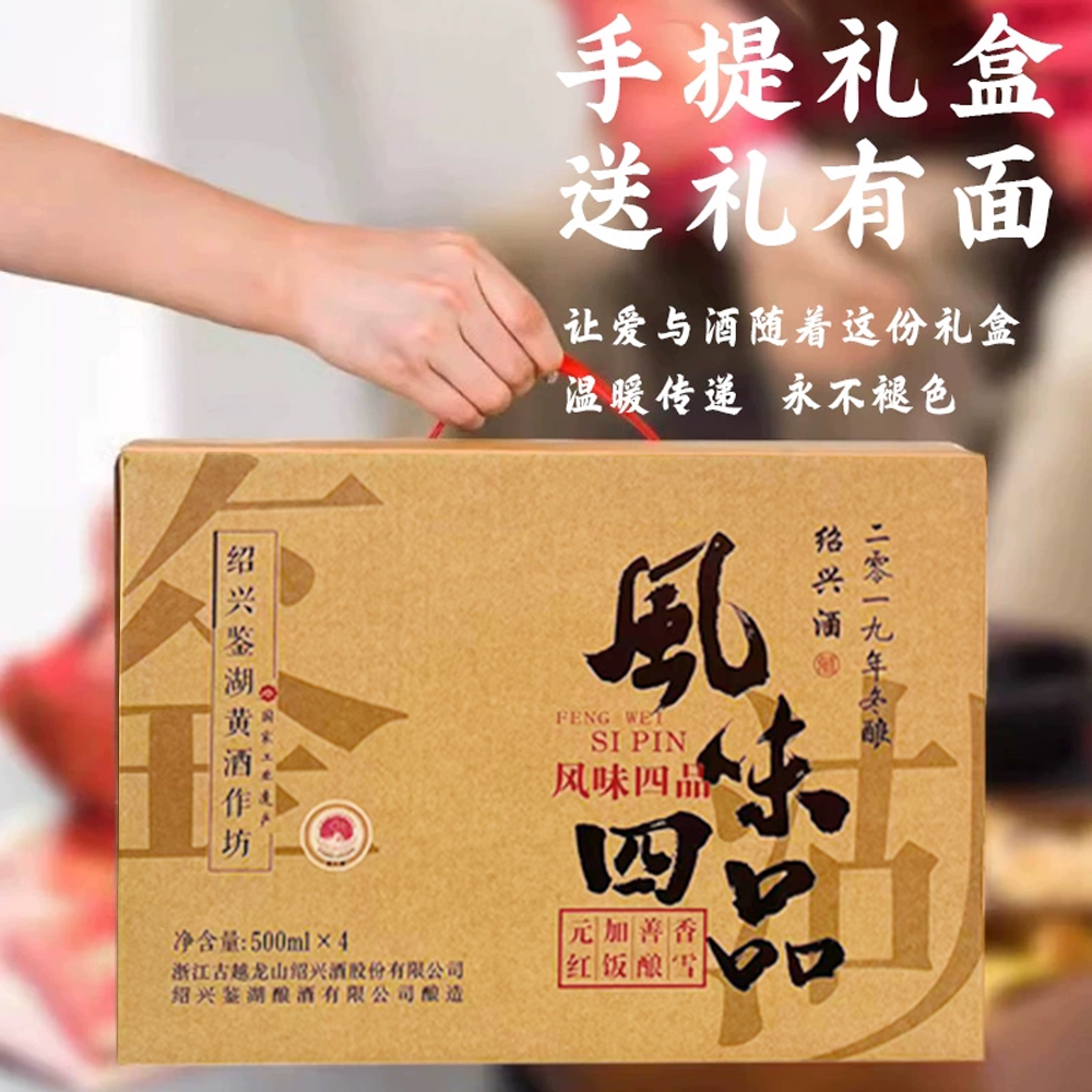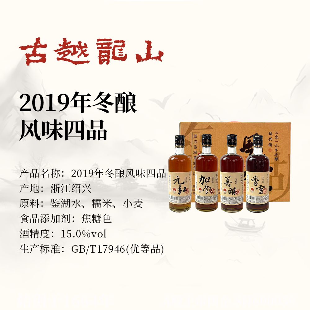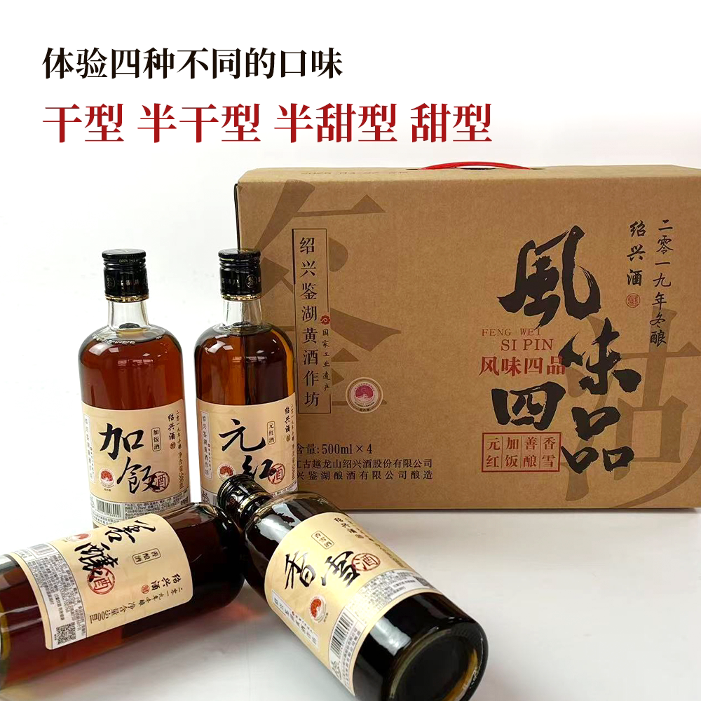 📚 古越龙山绍兴黄酒鉴湖风味四品 2019元红加饭善酿香雪500ml*4礼盒
