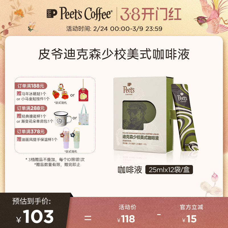📚 Peets皮爷迪克森少校美式咖啡液黑巧克力风味口感平衡