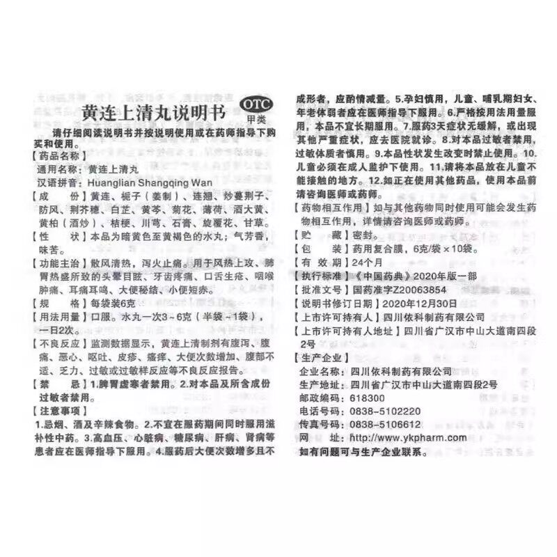 📚 低至5.3元】蜀中 黄连上清丸 6g*10袋/盒 咽喉肿痛口舌生疮耳鸣