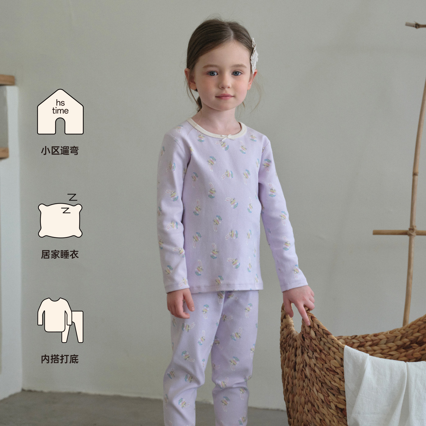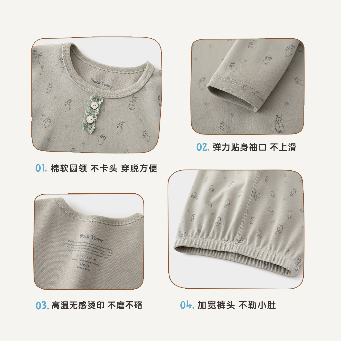 📚 小黑托尼昵纯棉女童保暖内衣套装罗纹弹弹棉秋衣裤睡衣保暖居家服