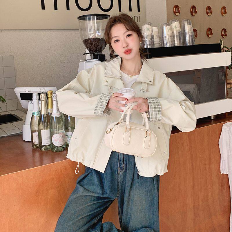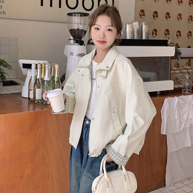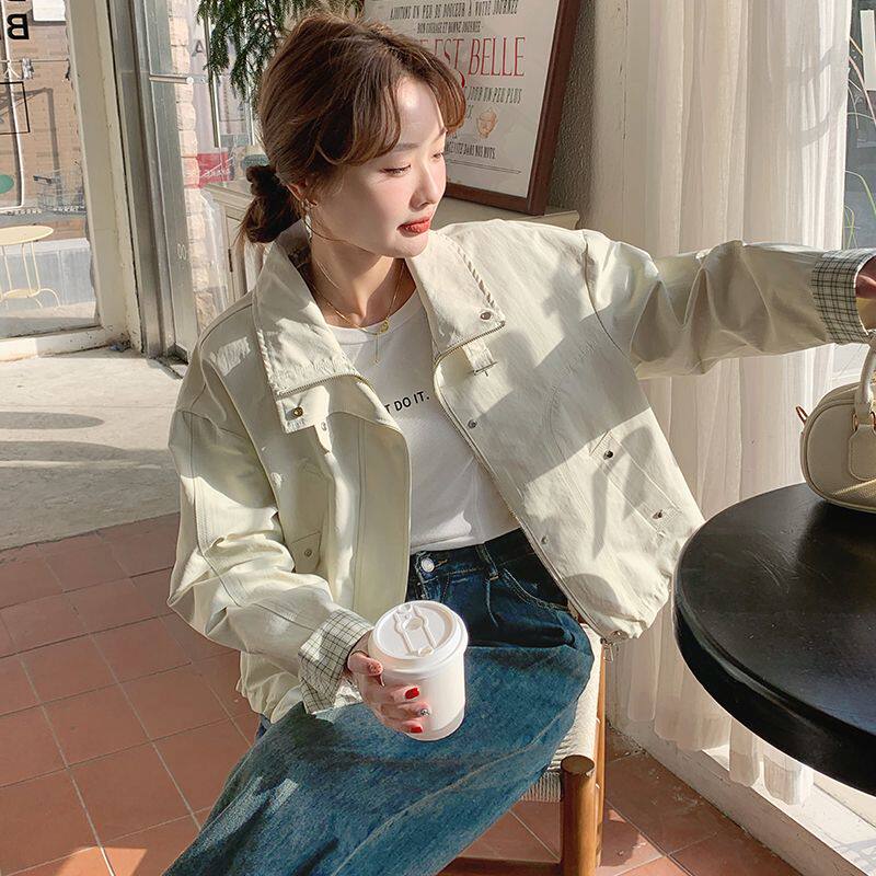 📚 米白色韩系休闲工装短外套女春季2025新款小个子宽松百搭夹克上衣