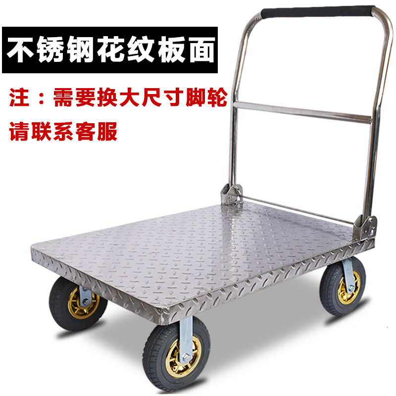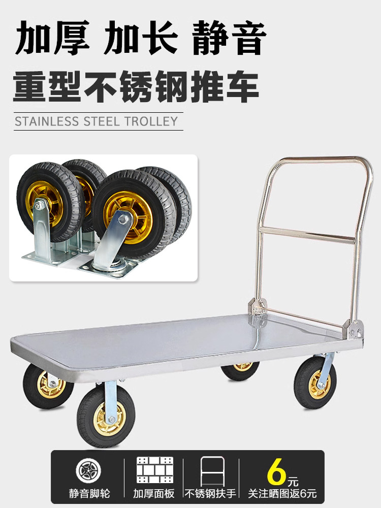 📚 不锈钢手推车平板车搬运车推货车轻音折叠小推车拉货车拖车小拉车