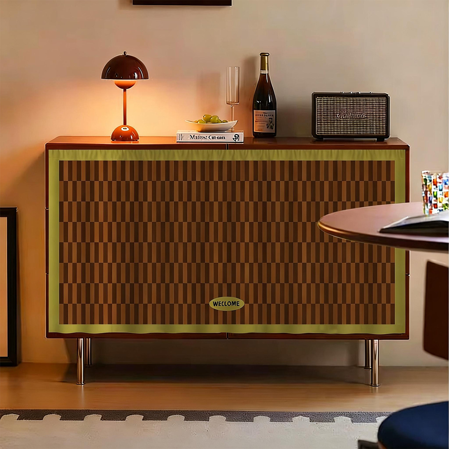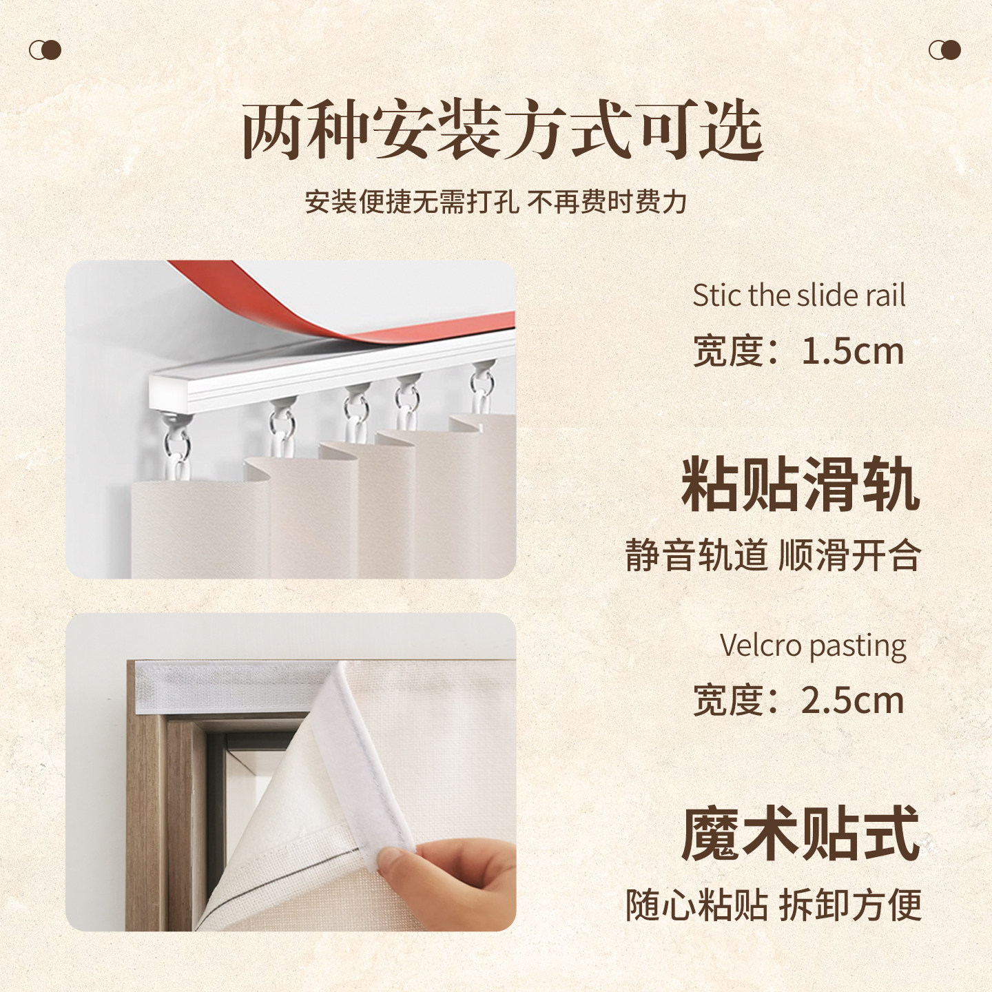 📚 复古无门柜子遮挡帘滑轨杂物遮丑帘橱柜置物架拉帘鞋柜防尘布帘