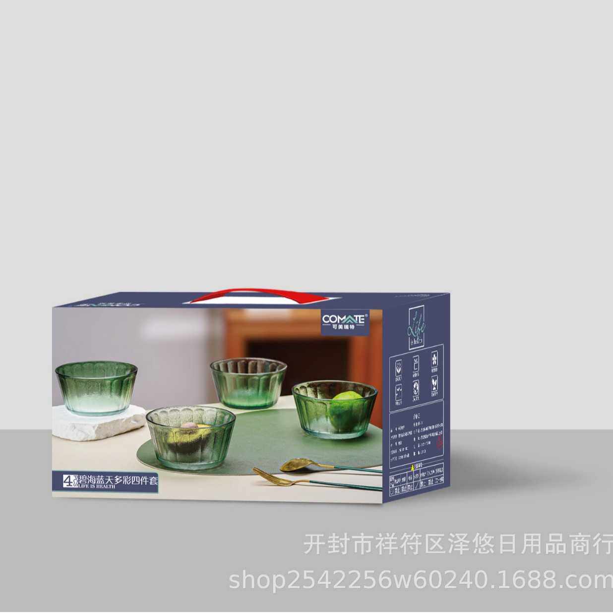 📚 新款直销可美瑞特碧海蓝天多彩4件套沙拉碗米饭碗玻璃碗节日礼品