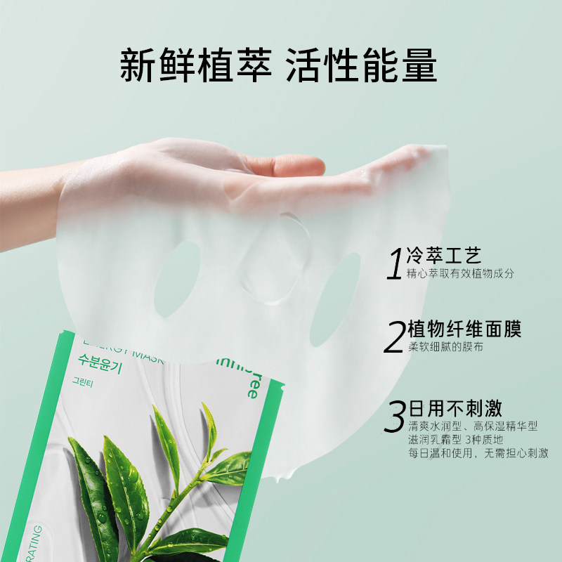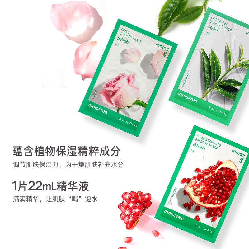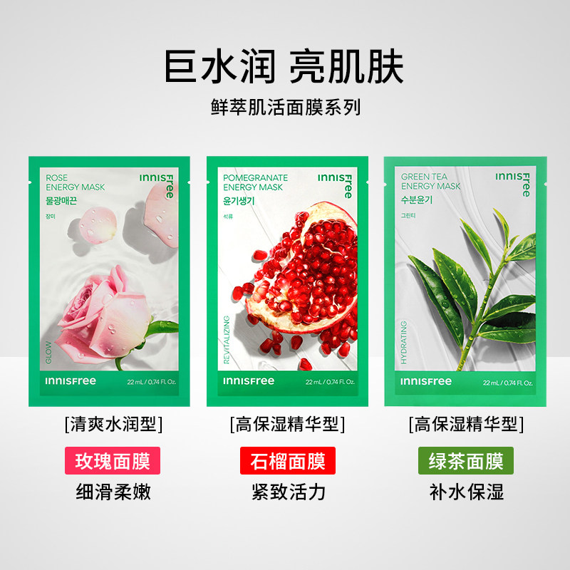 📚 悦诗风吟20片面膜补水保湿亮白修护鲜萃肌活石榴玫瑰绿茶贴亮舒缓