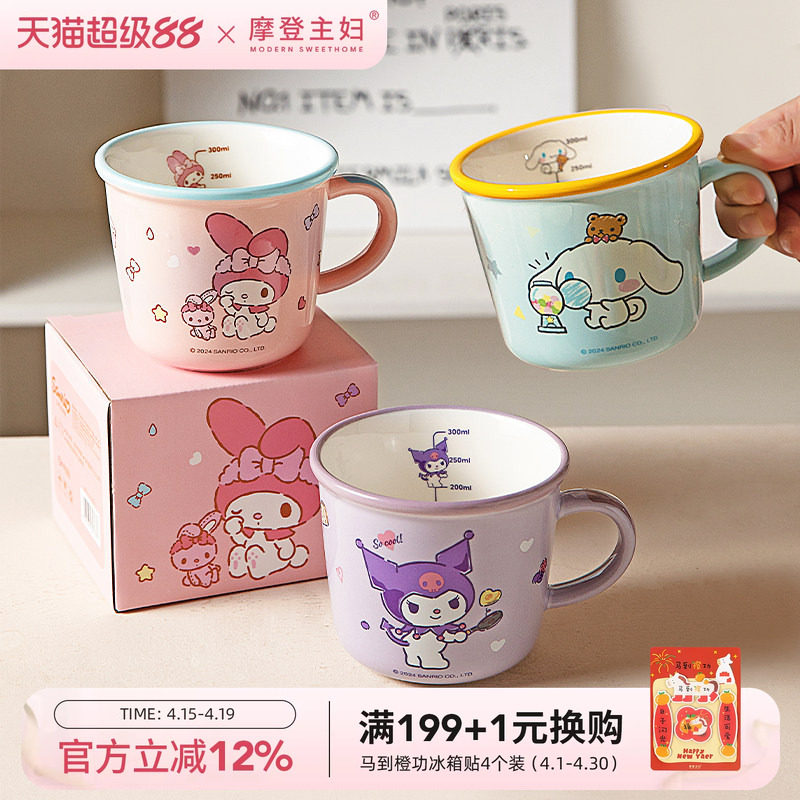 📚 摩登主妇三丽鸥儿童水杯家用杯子陶瓷马克杯可爱早餐杯刻度牛奶杯