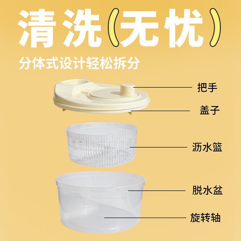 📚 蔬菜沙拉脱水器菜篮甩菜器手动甩干机沥水篮洗菜盆控水神器厨房用