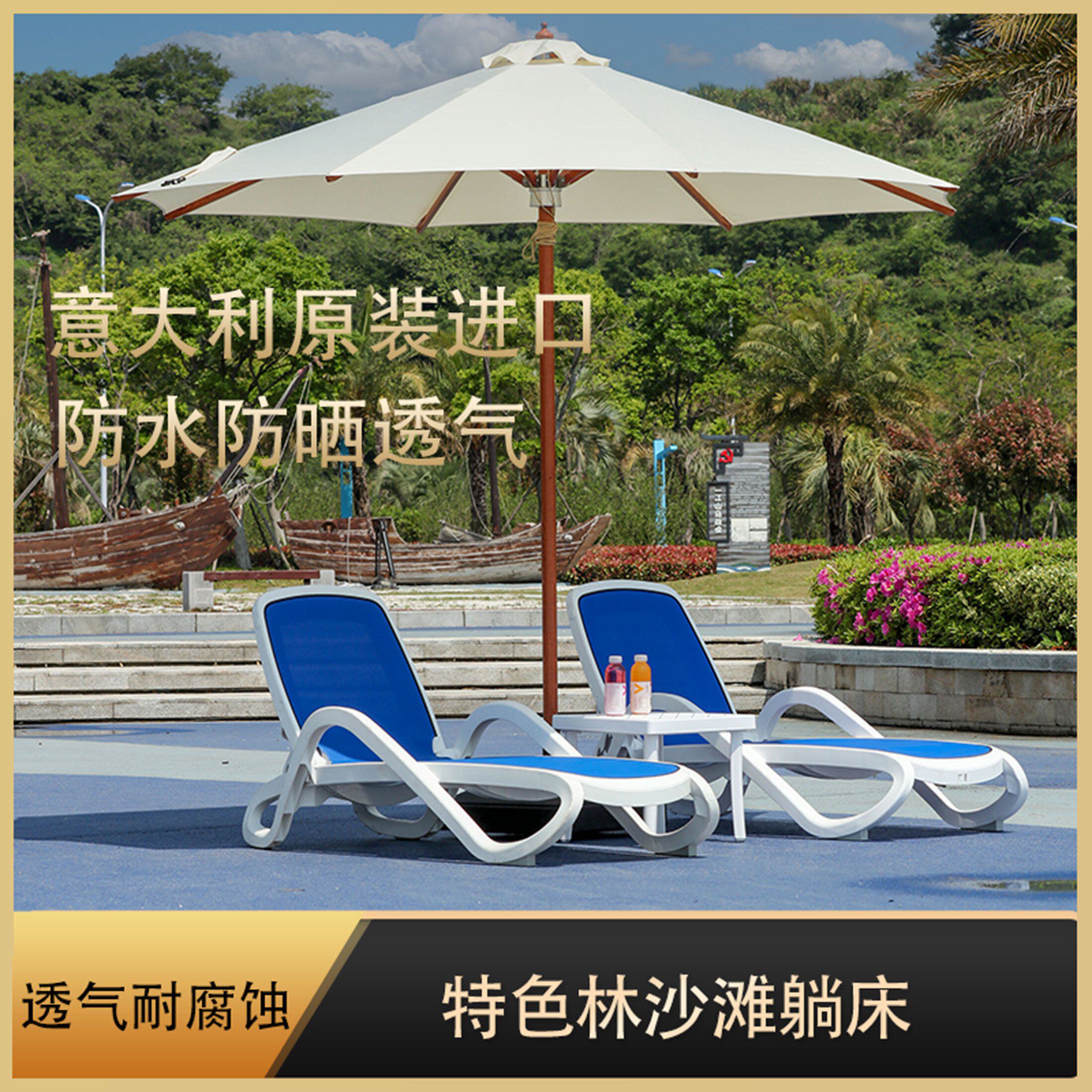 📚 户外躺床白色露天防水酒店泳池躺椅带伞日光床民宿海边休闲沙滩床