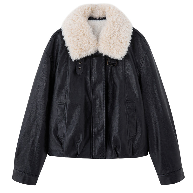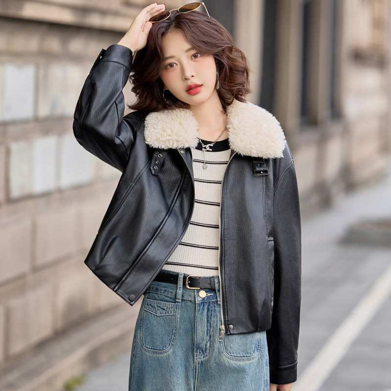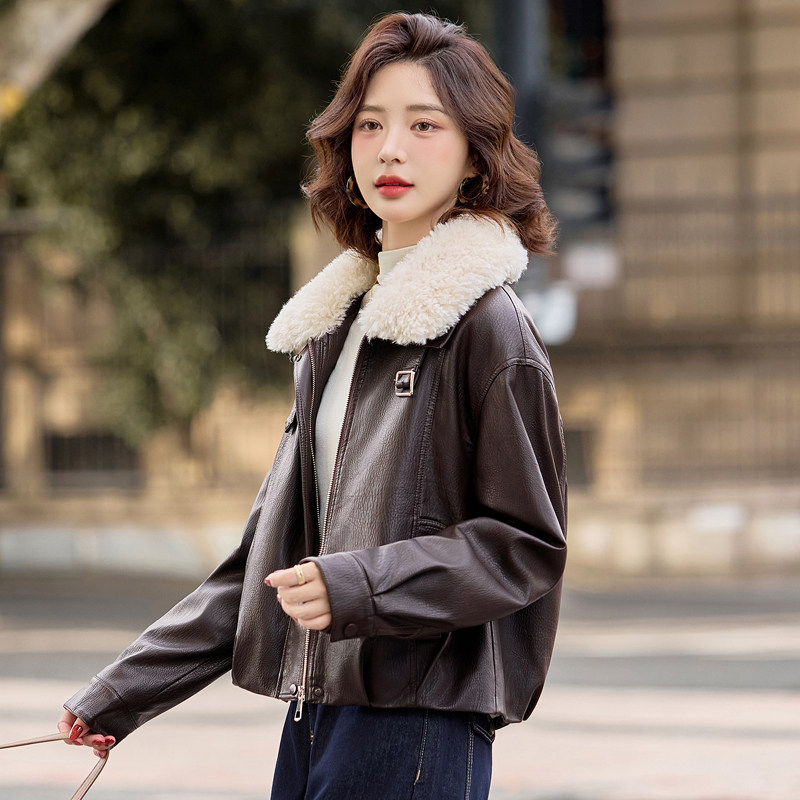 📚 海宁真皮皮衣女短款加绒加厚2025秋冬新款绵羊皮外套韩版宽松夹克