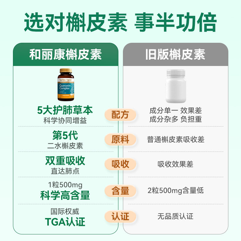 📚 HerbsofGold槲皮素高含量畅快呼吸清肺护肺澳洲进口和丽康 60粒*1