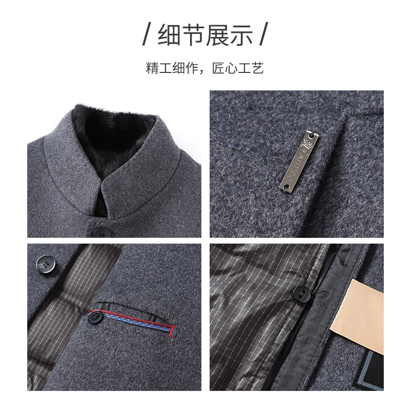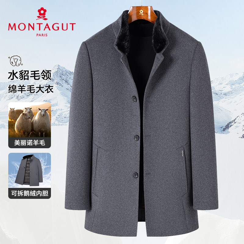 📚 [绵羊毛/水貂毛领/鹅绒内胆]梦特娇冬男士羊毛大衣立领羽绒外套J