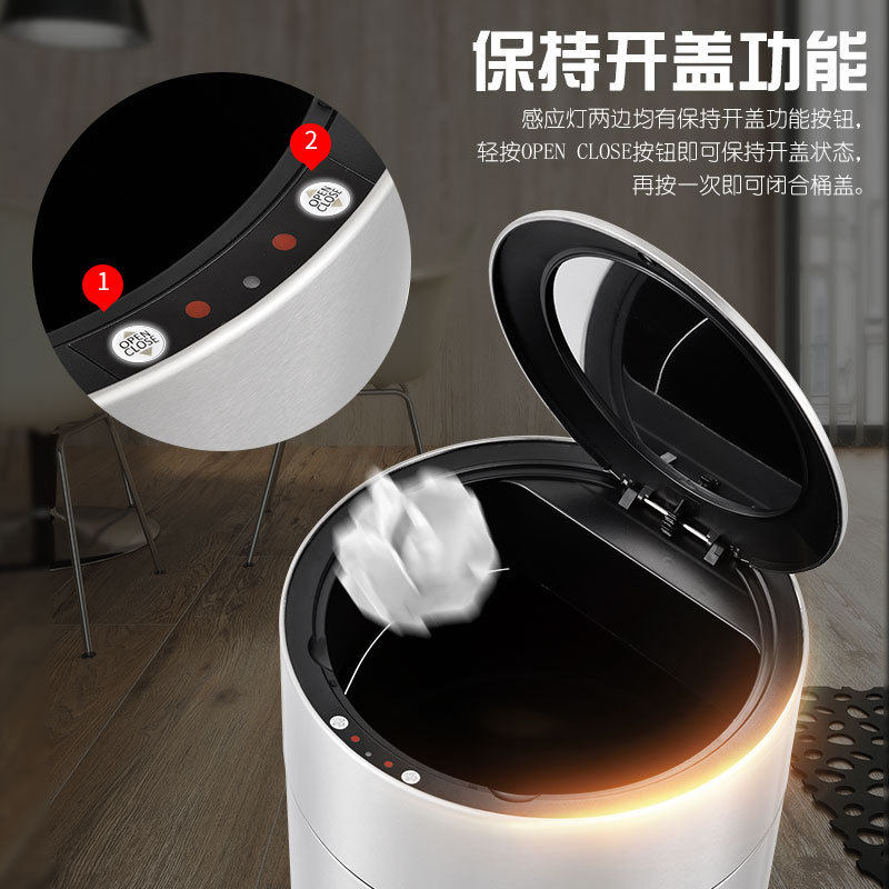 📚 不锈钢垃圾筒大号智能感应家用客厅卧室卫生间带盖电动垃圾桶