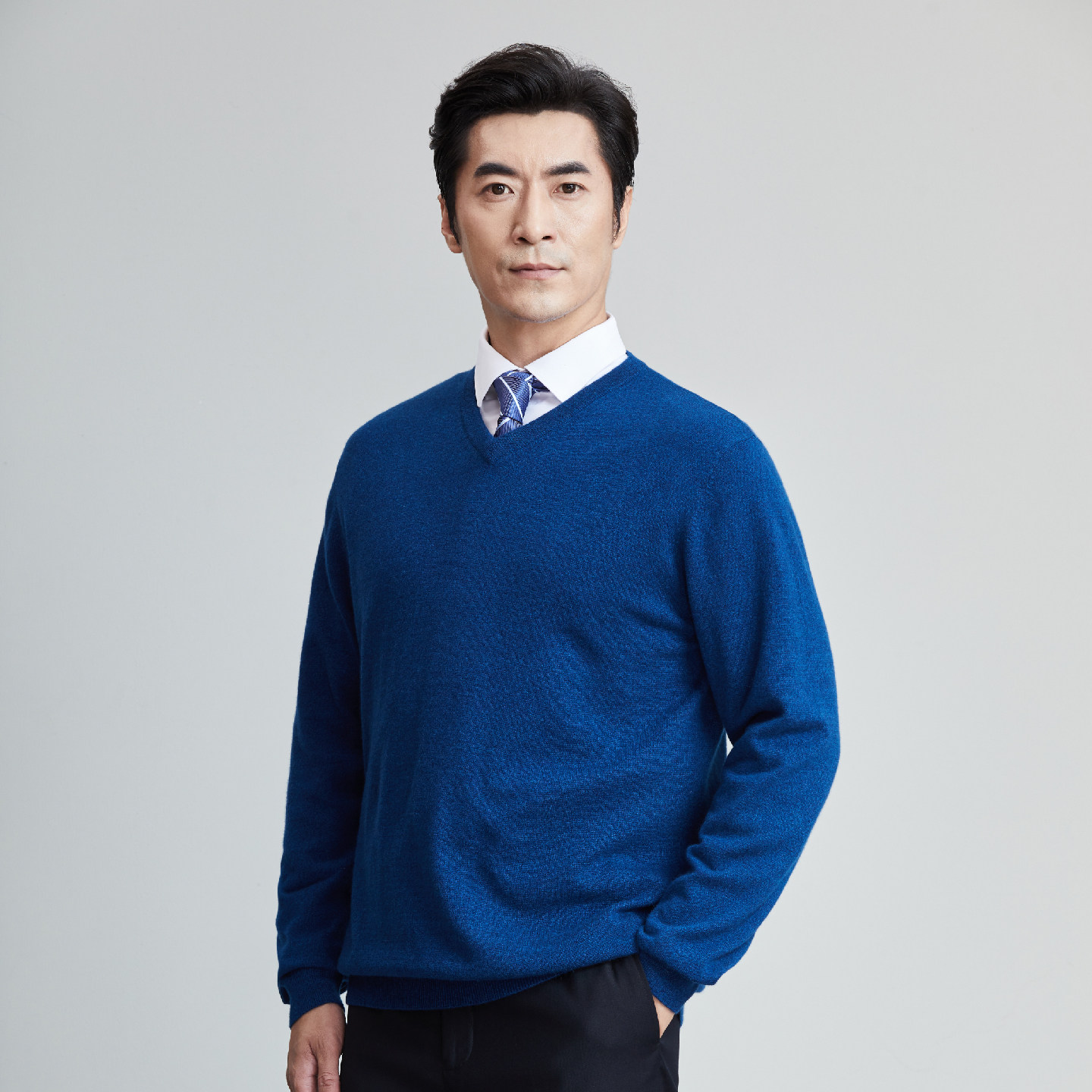📚 红都男士羊绒衫套头冬季保暖商务休闲V领上班开会正装内搭针织衫