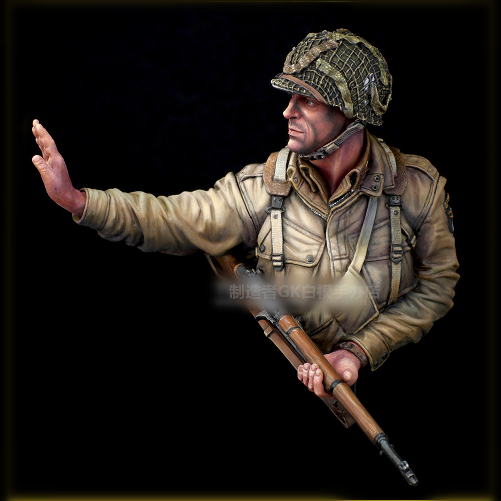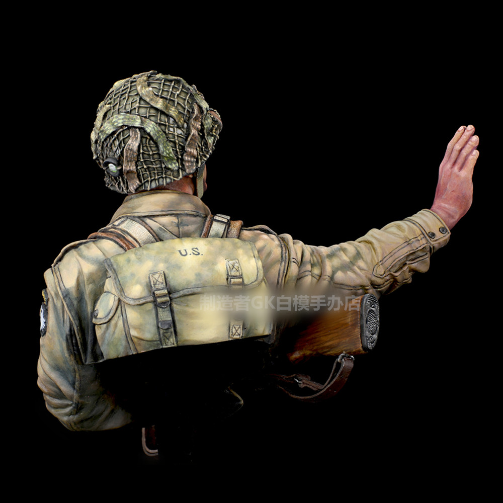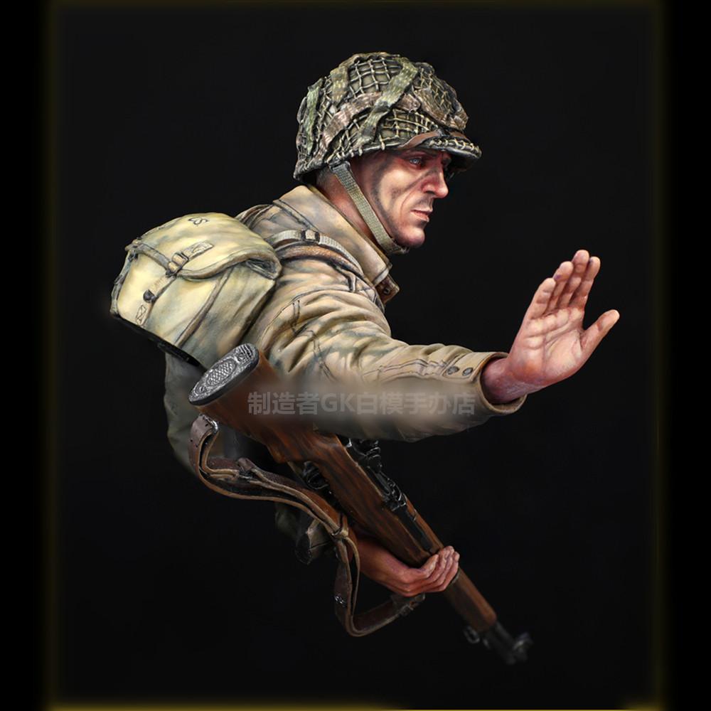 📚 1/10二战兵人半身胸像1944美军诺曼底空降士兵GK白模手办摆件X33