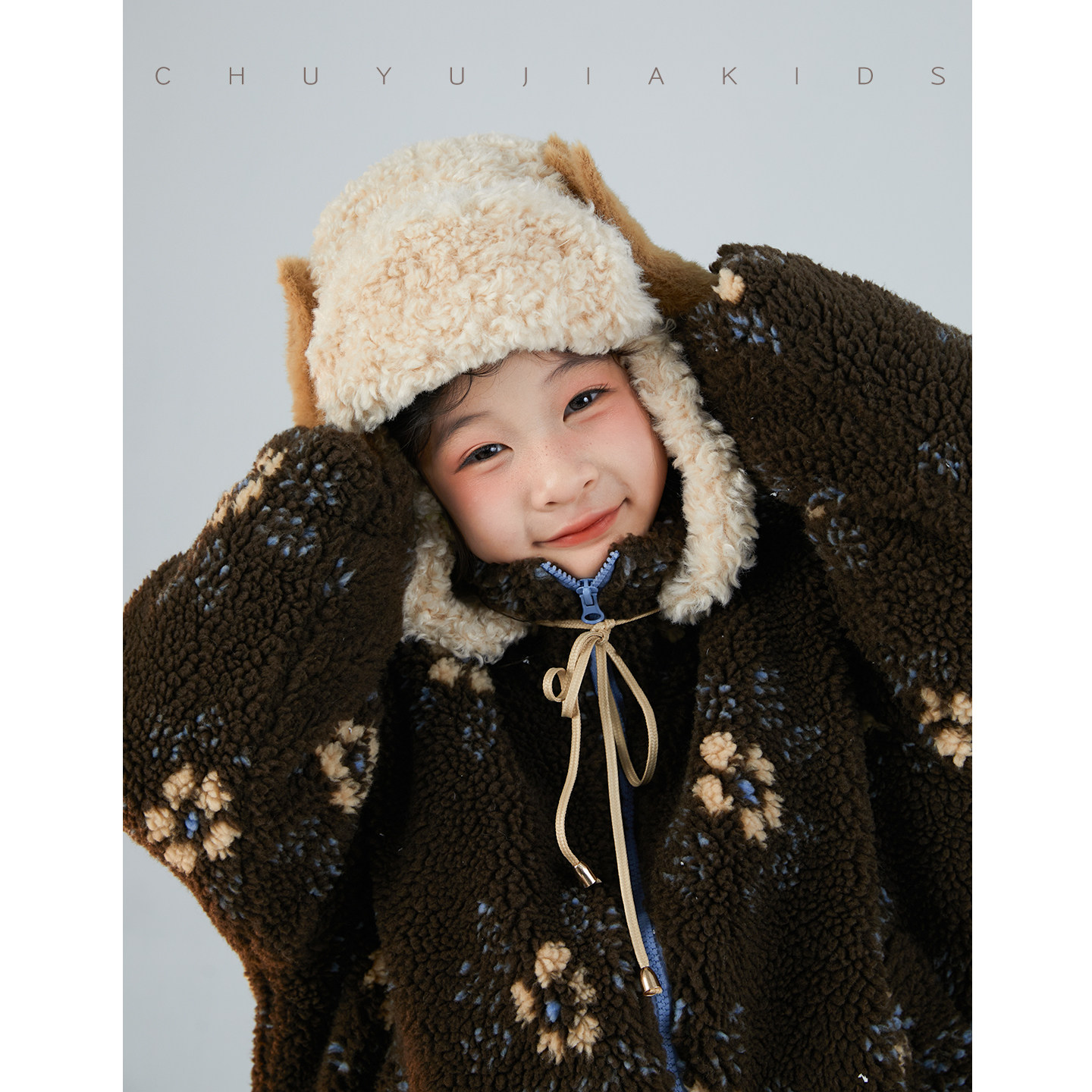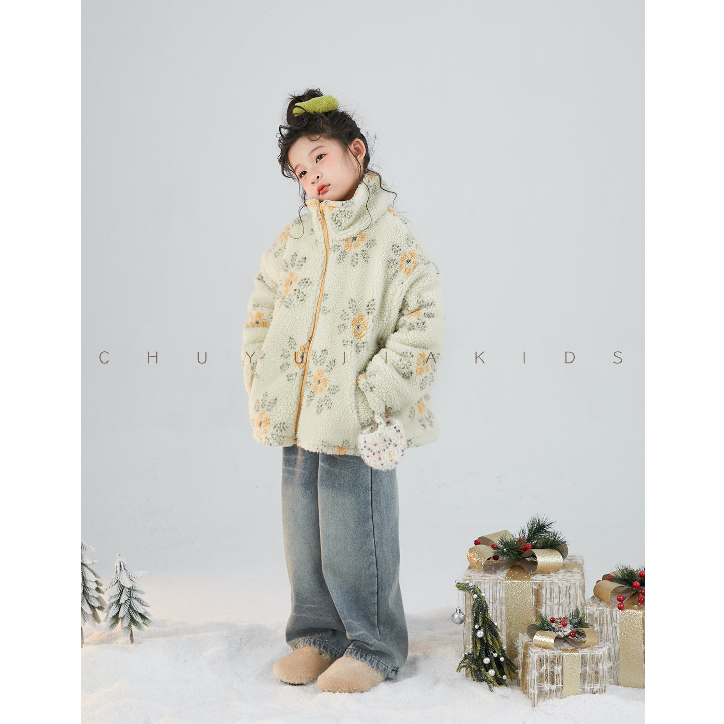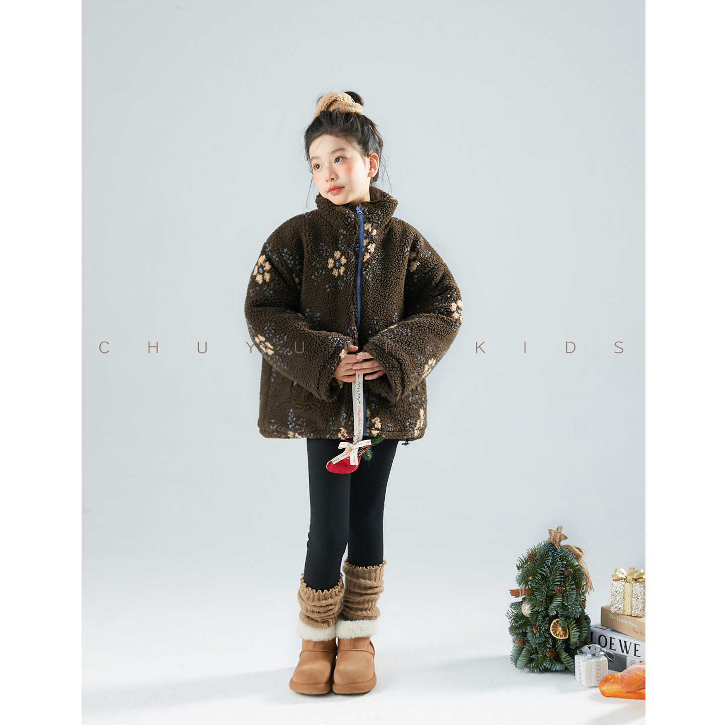 📚 初羽家【现货】中大童羊羔绒费尔岛外套冬季花朵加厚休闲印花棉服