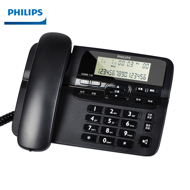 📚 飞利浦CORD118电话机 来电显示免提商务办公座机家用固定电话机