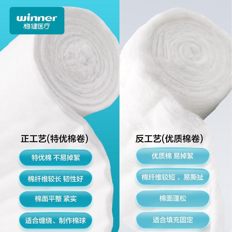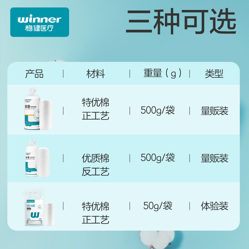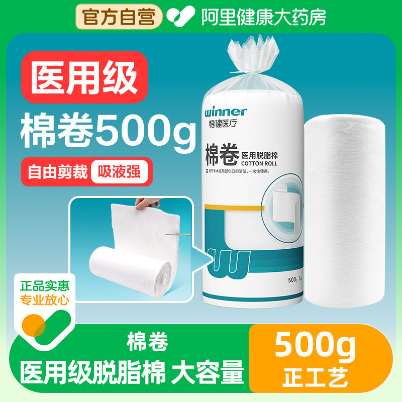 📚 稳健医用脱脂棉卷500g纯棉护理伤口创伤一次性家用大包1卷/袋棉签